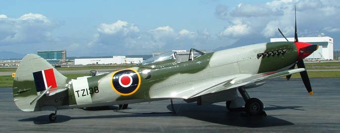 Supermarine (Vickers) Spitfire FR Mk. XIVe, (Serial No. TZ138), (Serial No. 5447), C/N 6S/676505, C-GVZB.  This aircraft is stored at Vancouver International Airport, British Columbia.