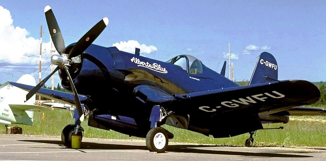 Vought F4U-7 Corsair (BuNo. 133714), ex French Navy, Reg. No. C-GWFU, “Alberta Blue“, ex-N33714, Blain Fowler, Alberta.