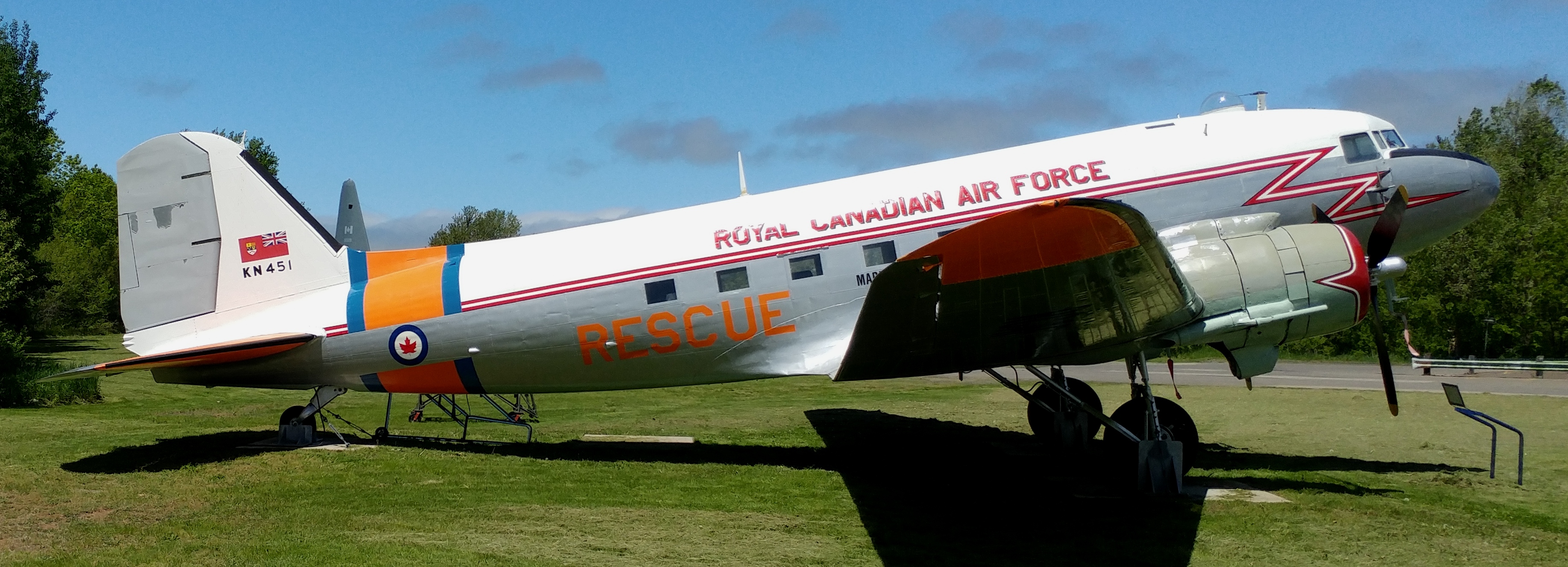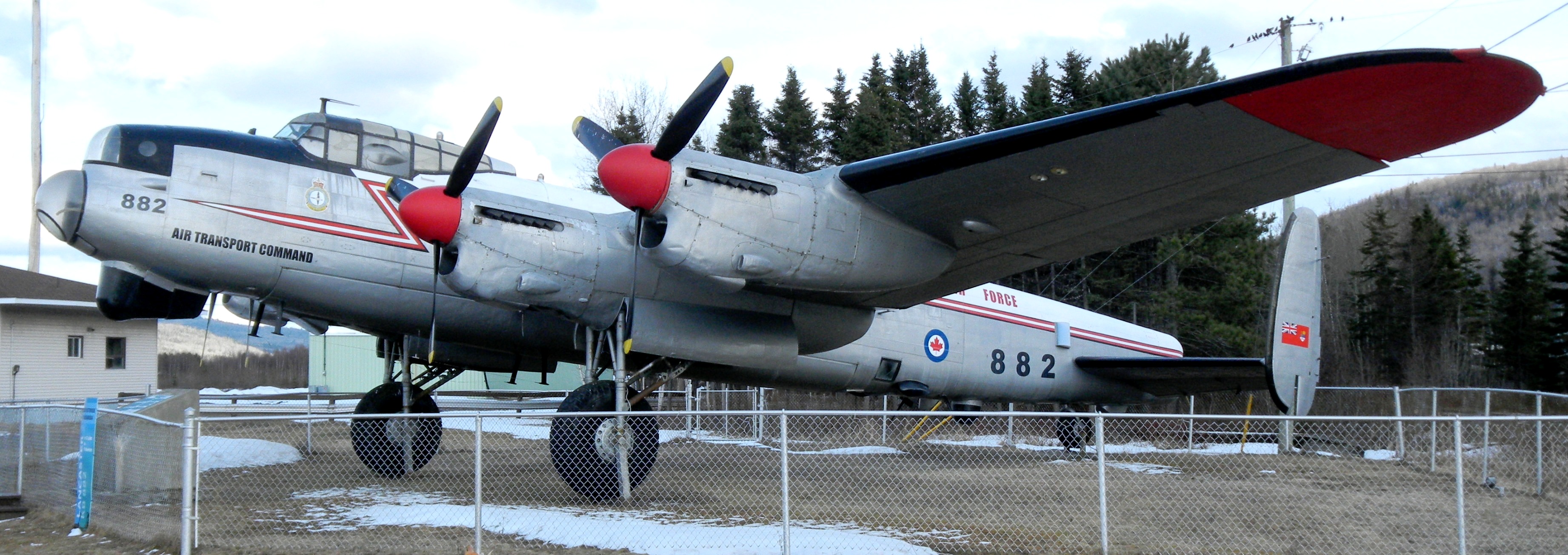 Avro 683 Lancaster Mk. XMP (Serial No. KB882).  KB882 was one of 430 Lancasters built by Victory Aircraft at Malton, Ontario, in 1945 and delivered to Britain.  the aircraft joined No. 428 Squadron RCAF in March of that year. Flown on six operational sorties over Germany, the aircraft was returned to Canada in June 1945 and entered storage.  In 1952, the aircraft was modified to Mk 10P configuration and flew with No. 408 Squadron, RCAF.  The Lancaster was modified with ‘state of the art’ SHORAN radar navigation equipment and served a vital role mapping Canada’s north.   In 1964, the aircraft was purchased by the City of Edmundston, New Brunswick and has since been outside on display at the Municipal Airport.  KB882 is still in its RCAF aerial mapping configuration.  In October 2017 this aircraft was moved from Edmundston, New Brunswick to the National Museum of the RCAF at CFB Trenton, Ontario.