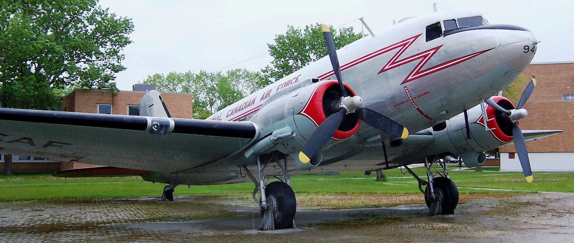 Avro 683 Lancaster Mk. B.X (Serial No. KB839), 696.  Built in Malton, Ontario in 1944, this aircraft flew 26 bombing sorties from the UK with RCAF No. 419 “Moose” Squadron.  It was nicknamed “Daisy” after a dog in a popular comic strip.  KB839 sustained damage on two occasions but survived the war and later flew with No. 409 “Goose” Squadron in Canada.  It was modified with a longer (31-inch) nose to facilitate the installation of cameras for arctic mapping and reconnaissance duties, and the nose, dorsal and tail turrets were removed.  KB839 was last flown on 11 Mar 1964, and retired in Greenwood.  In the summer of 1987, its four engines and propellers were donated to the Canadian Warplane Heritage Museum for use on FM213, VRA, currently one of  only two flying Lancasters in the world.  The restoration crew have returned this aircraft to its wartime configuration by removing the 31-inches from the nose and extensively refurbishing the bomber.  An accurate reproduction of a Frazer-Nash nose turret and a dorsal turret will be added in 2016.  Greenwood Military Aviation Museum, CFB Greenwood, Nova Scotia.
