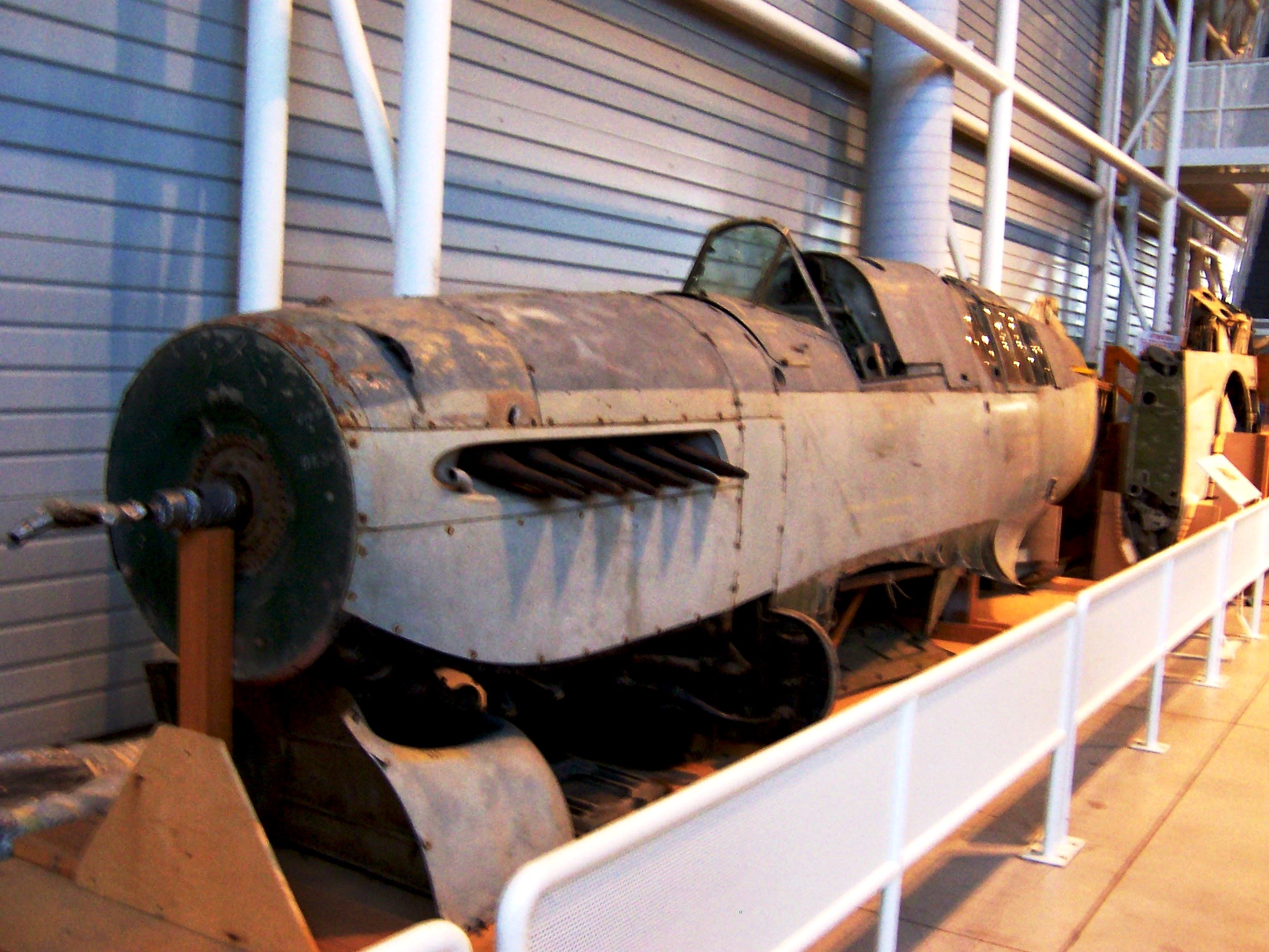 Supermarine Spitfire F Mk. XIVe (Serial No. RM747).  This aircraft is in storage.  It served with No. 322 (Dutch) Sqn, No. 350 (Belgian) Sqn, No. 451 (Australian) Sqn, before serving with the Royal Thai Air Force as (Serial No. Kh.14-5/93).  During the 1980s it was part of a playground at Sawankalok, Thailand.  Vintage Wings of Canada, Gatineau, Quebec.