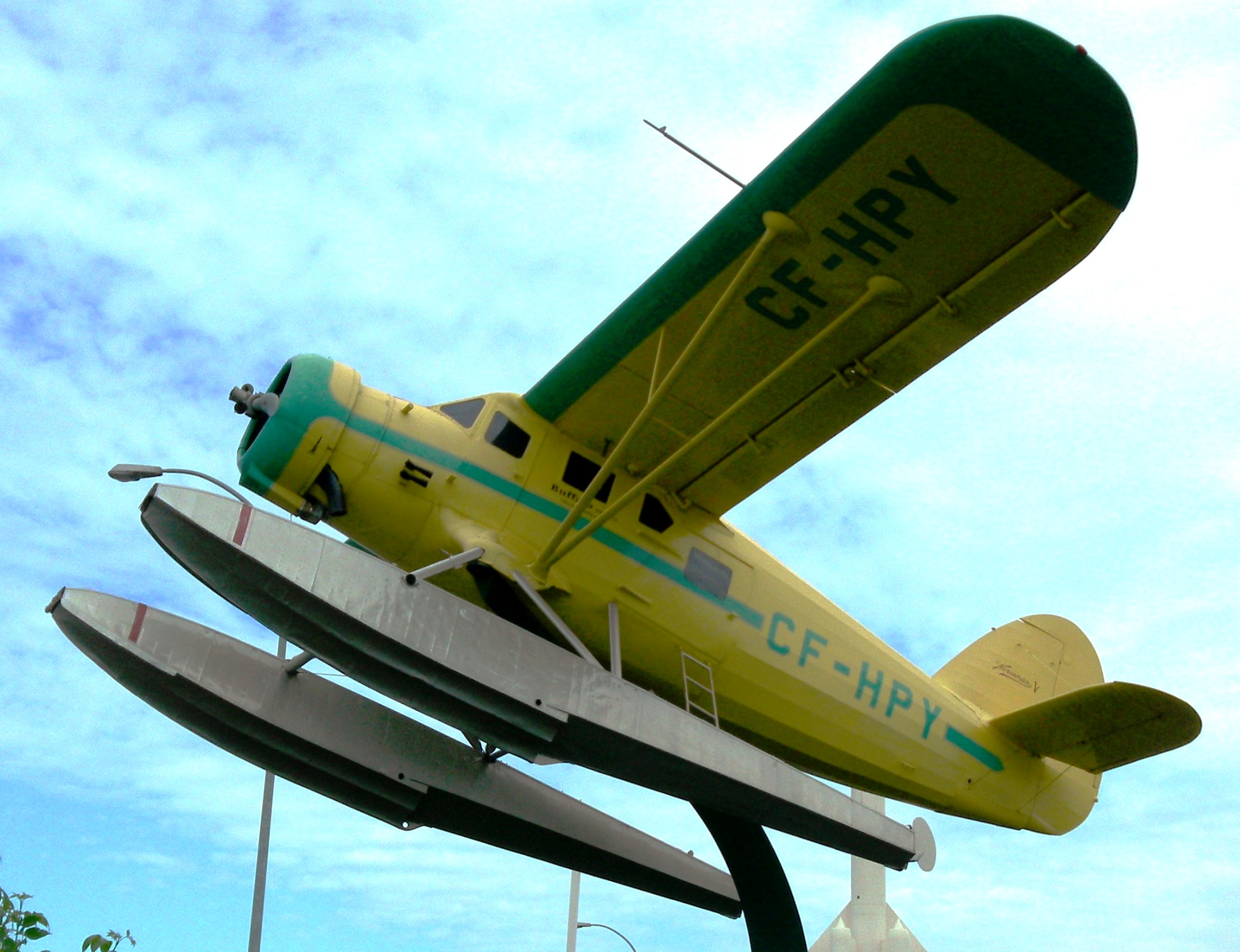 Avro 683 Lancaster Mk. X (Serial No. FM104), mounted on a pylon on the Toronto waterfront, before being taken down for restoration.