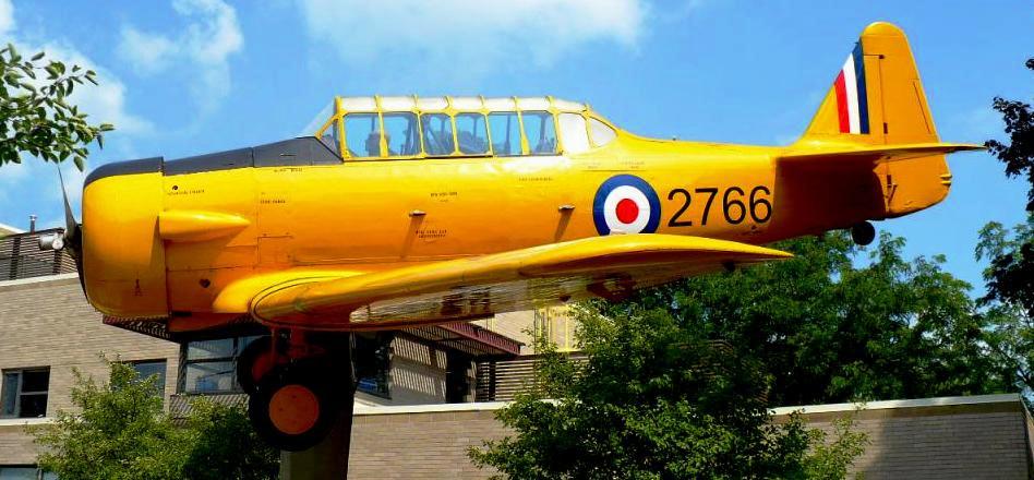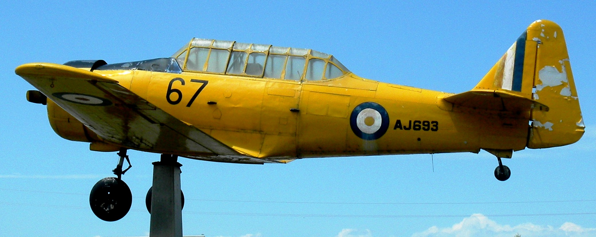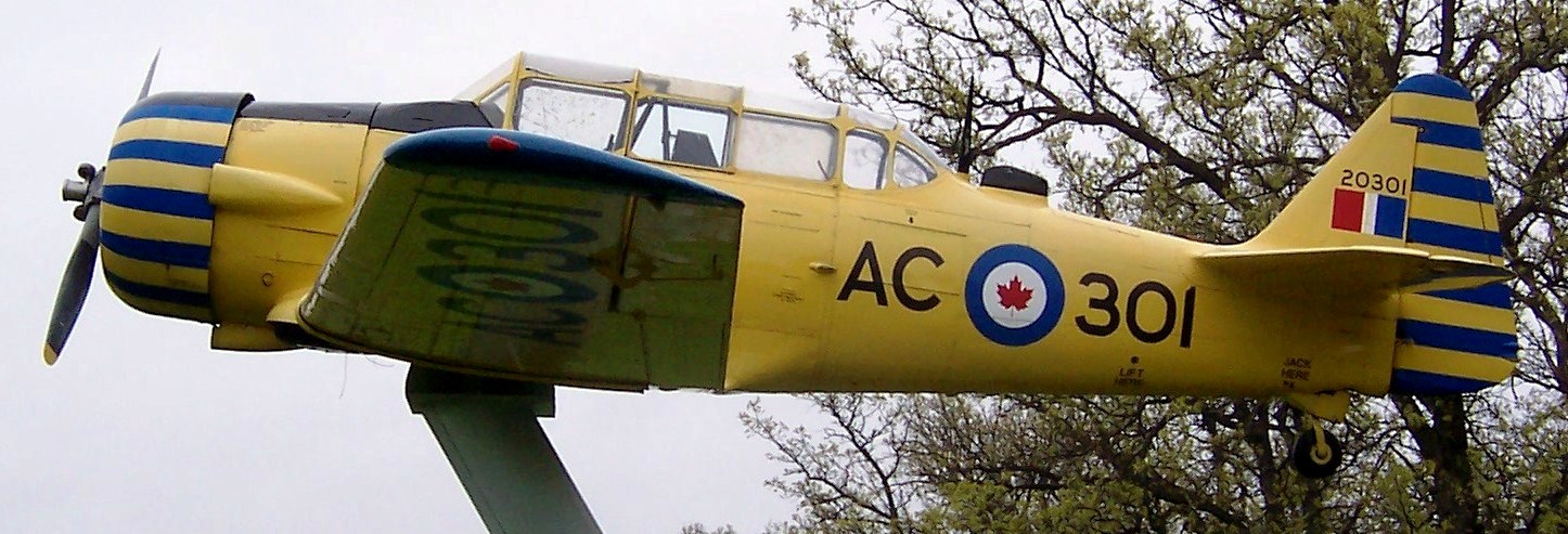 North American NA-66 Harvard Mk. II, RCAF (Serial No. AJ693), C/N 76-3663, 67.  Mounted on a pylon at the Kingston Municipal Airport, RCAFA 416 Wing, Kingston, Ontario.