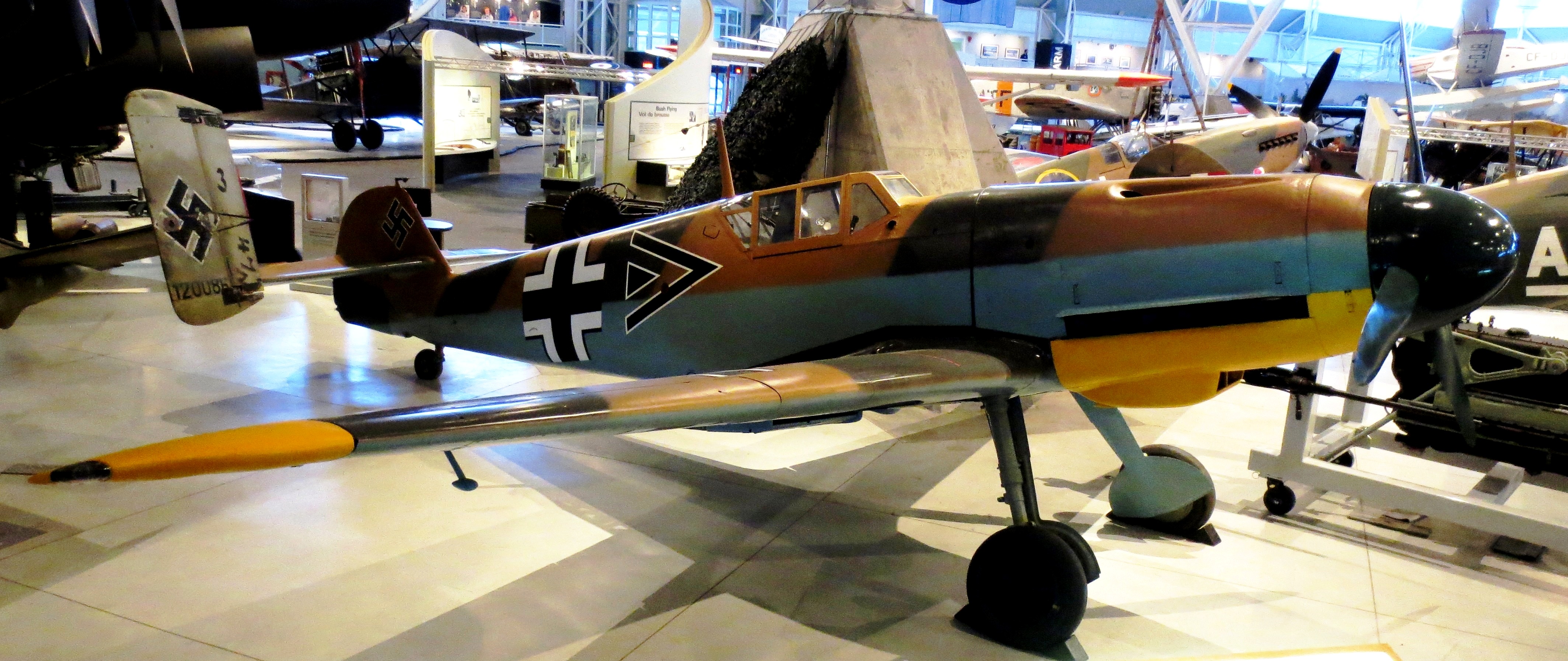 Supermarine Spitfire F Mk. IIb (Serial No. P8332), (6173), CBAF 711.  Currently on display in the Canadian War Museum, this aircraft is a Battle of Britain veteran.  She wears the codes ZD-L of No. 222 Sqn, which she wore when serving with the Squadron in 1941.  It is a “Presentation” aircraft and carrries the name “SOEBANG N.E.I.”, funded by the Netherlands East Indies.  Canadian War Museum, Ottawa, Ontario.