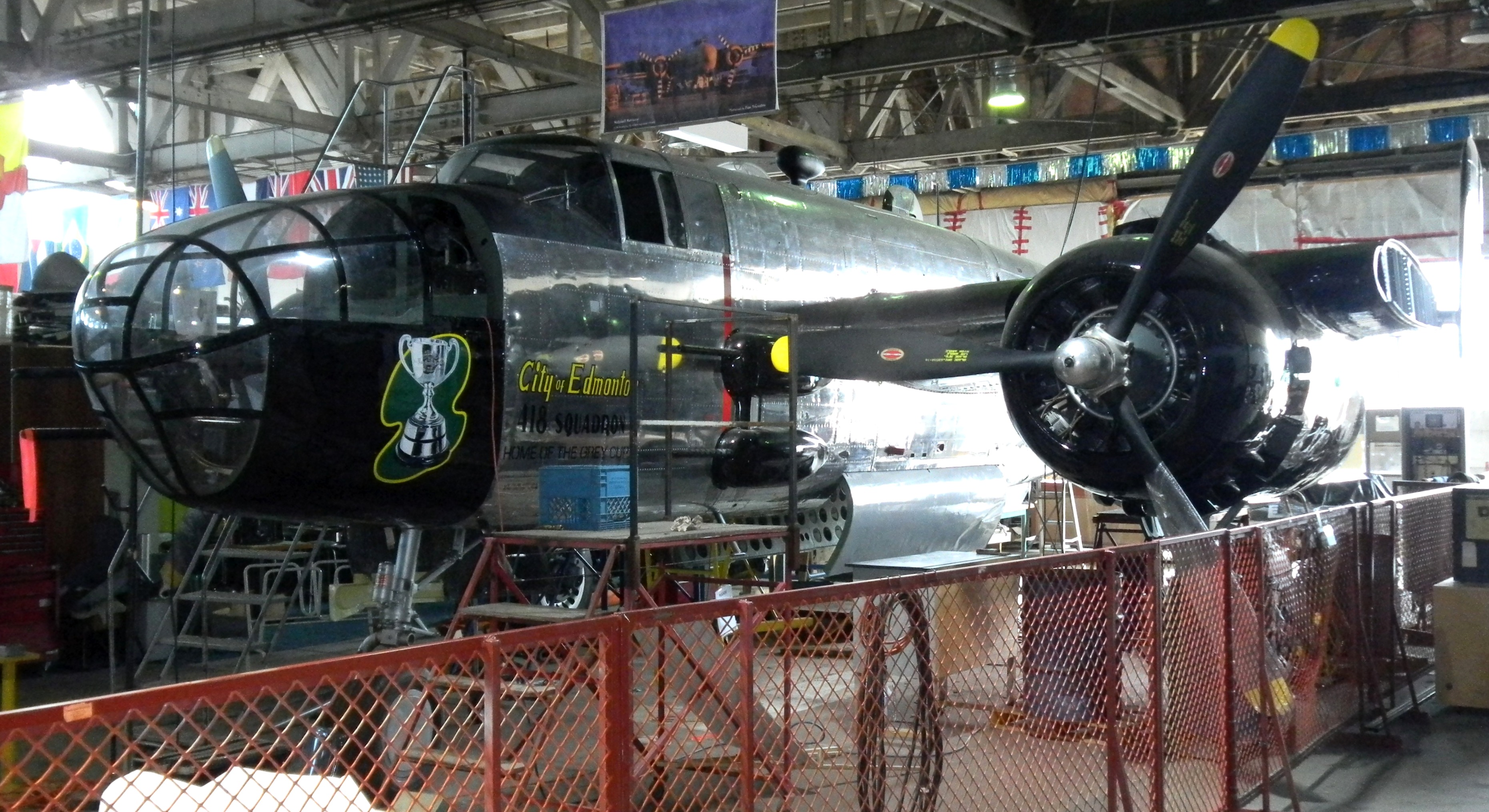 North American B-25J Mitchell Mk. III (Serial No. 5273).  Being restored.  Alberta Aviation Museum, Edmonton Aviation Heritage Centre, Alberta.