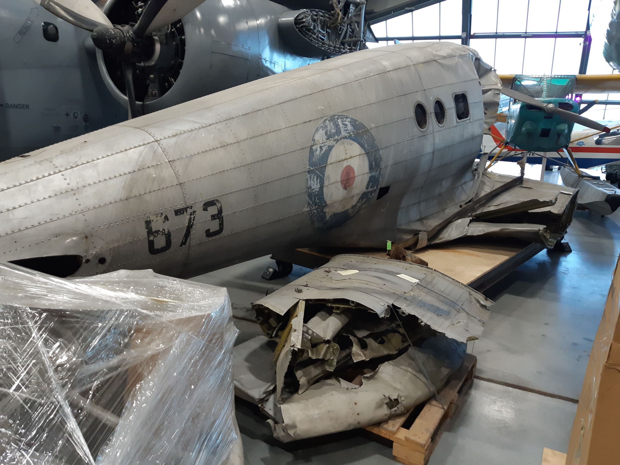 Avro 652A Anson Mk. II, parts (Serial No. 7139), CF1349.  Canadian Museum of Flight, Langley, British Columbia.