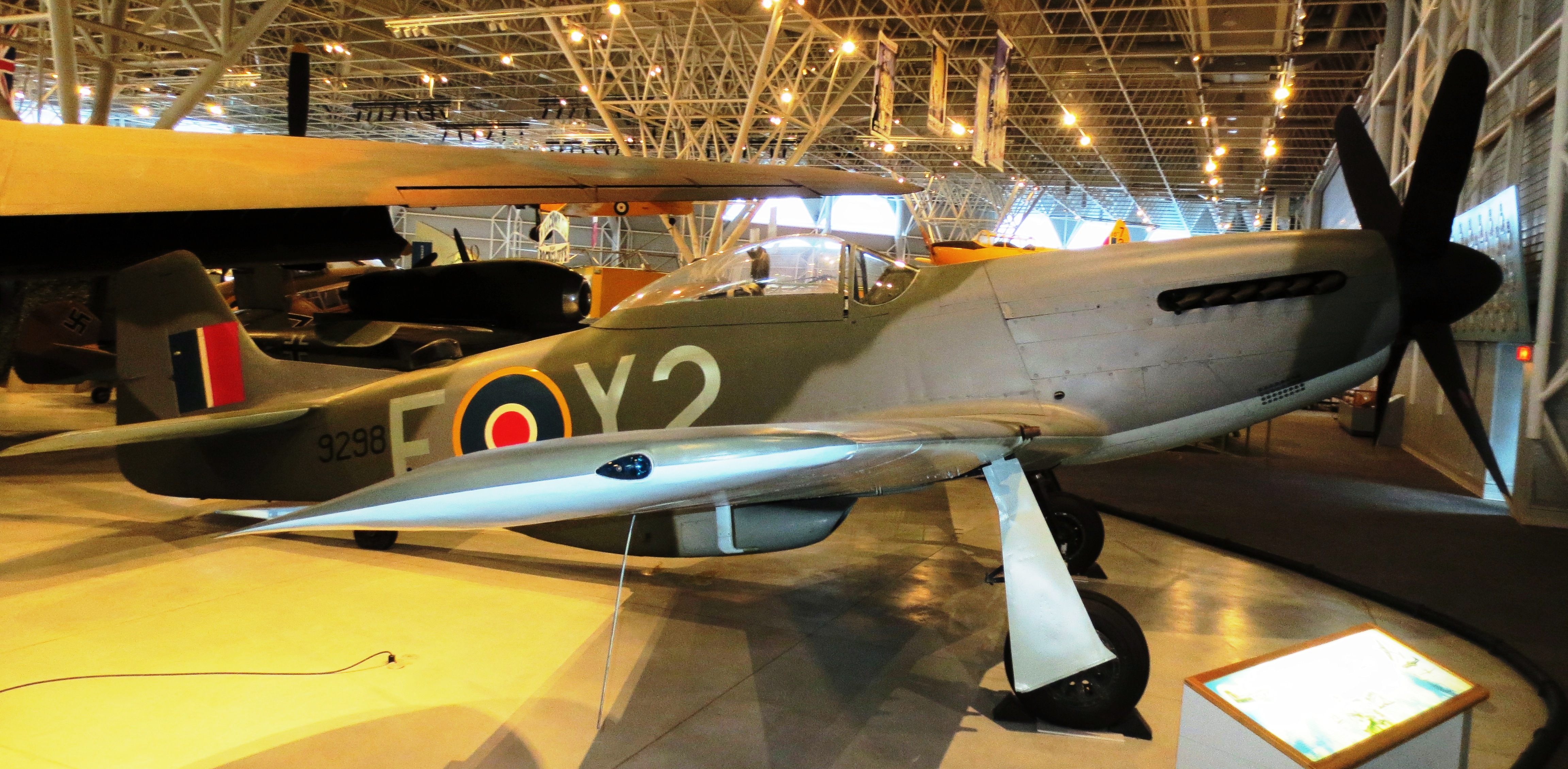Supermarine Spitfire LF Mk. IX c(Serial No. NH188), CBAF IX 2161. This aircraft served with the Royal Netherlands Air Force as (Serial No. H-109) later (Serial No. H-64) from 1947 to 1952 and with the Belgian Air Force as (Serial No. SM-39) from 1952 to 1954.  Privately owned, it was flown in Belgium as OO-ARC and was later imported to Canada where it flew as CF-NUS.  After being donated on 7 June 1964, it is now on display as AU-H.  Canada Aviation and Space Museum, Ottawa, Ontario.