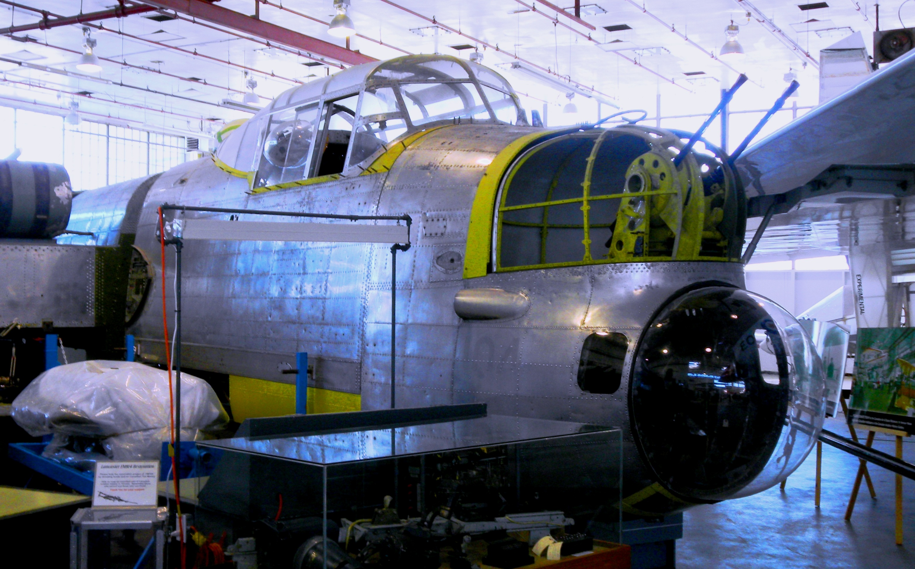Avro 683 Lancaster Mk. X (Serial No. FM104), undergoing restoration in the Canada Air and Space Museum, Toronto, Ontario.  FM104 has been transferred by the Toronto City Council to the British Columbia Aviation Museum on Vancouver Island, British Columbia.