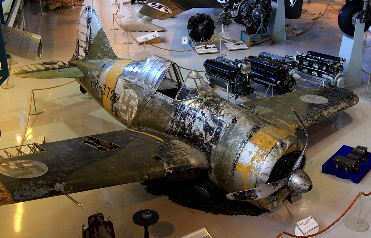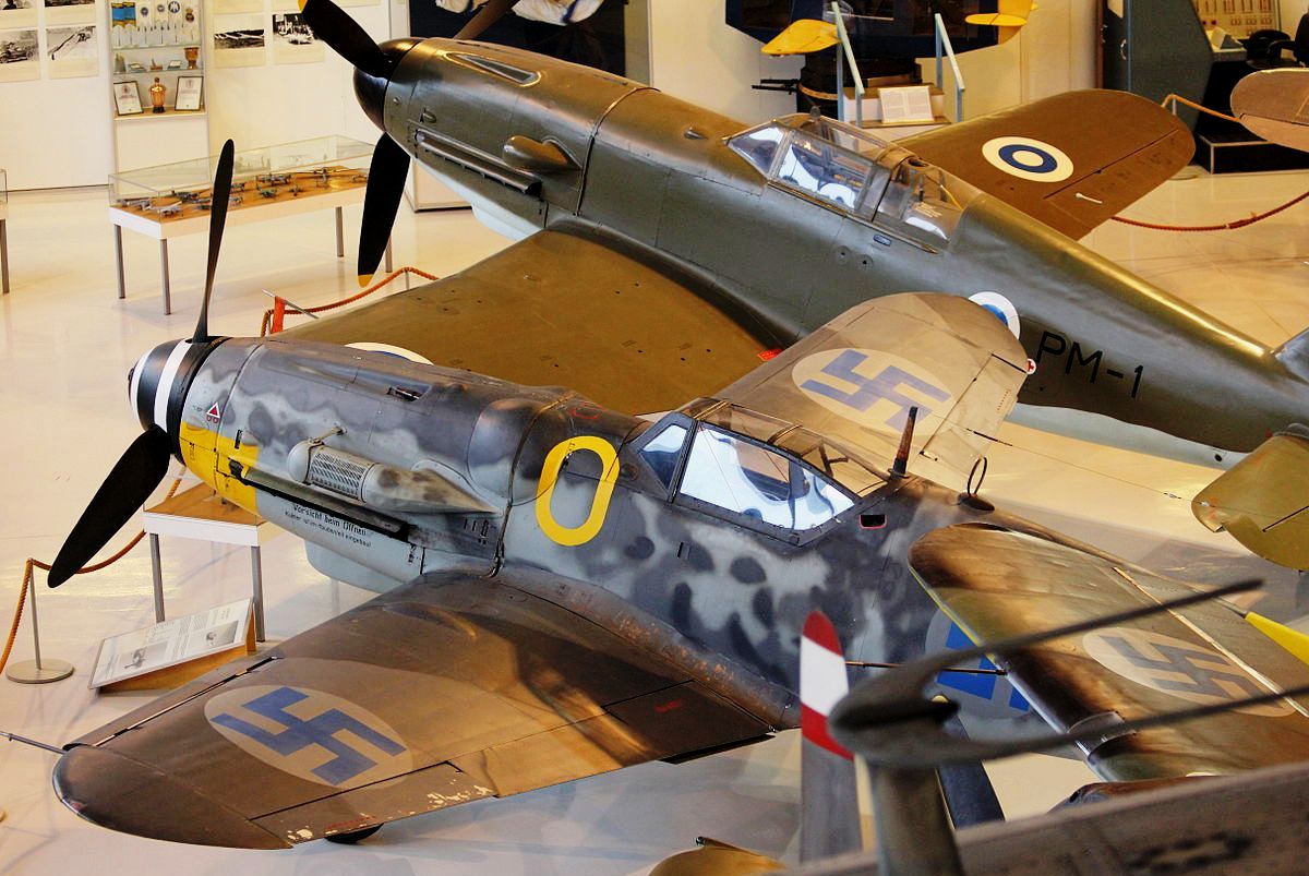 The FiAF’s main mission was to achieve air superiority over Finland and prevent Soviet air power from reinforcing their front lines. The fighter squadrons were very successful in the Finnish offensive of 1941. A stripped-down, more manoeuvrable, and significantly lightened version of the American Brewster B239 Buffalo was the FiAF’s main fighter until 1943. Results with this fighter were very good, even though the type was considered to be a failure in the US Navy and with British Far East forces. In the Finnish use, the Brewster had a victory rate of 32:1 – 459 kills to 15 losses. German Messerschmitt Bf 109s replaced the Brewster as the primary front-line fighter of the FiAF in 1943, though the Buffalos continued in secondary roles until the end of the wars.