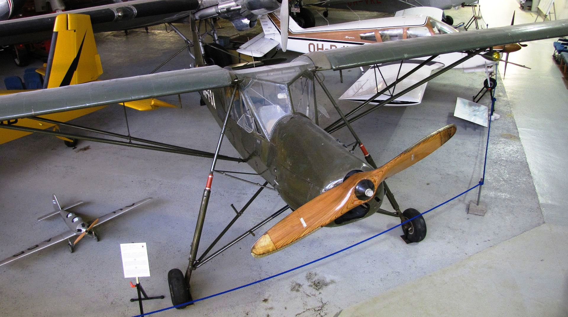 VL Pyry (Blizzard). This aircraft is a Finnish low-winged, two-seated fighter trainer aircraft, built by the State Aircraft Factory for the Finnish Air Force. The Pyry was in use from 1939 to 1962. The aircraft was a mixed construction of wood, steel, fabric, and duraluminium. Central Finland Aviation Museum, Tikkakoski.