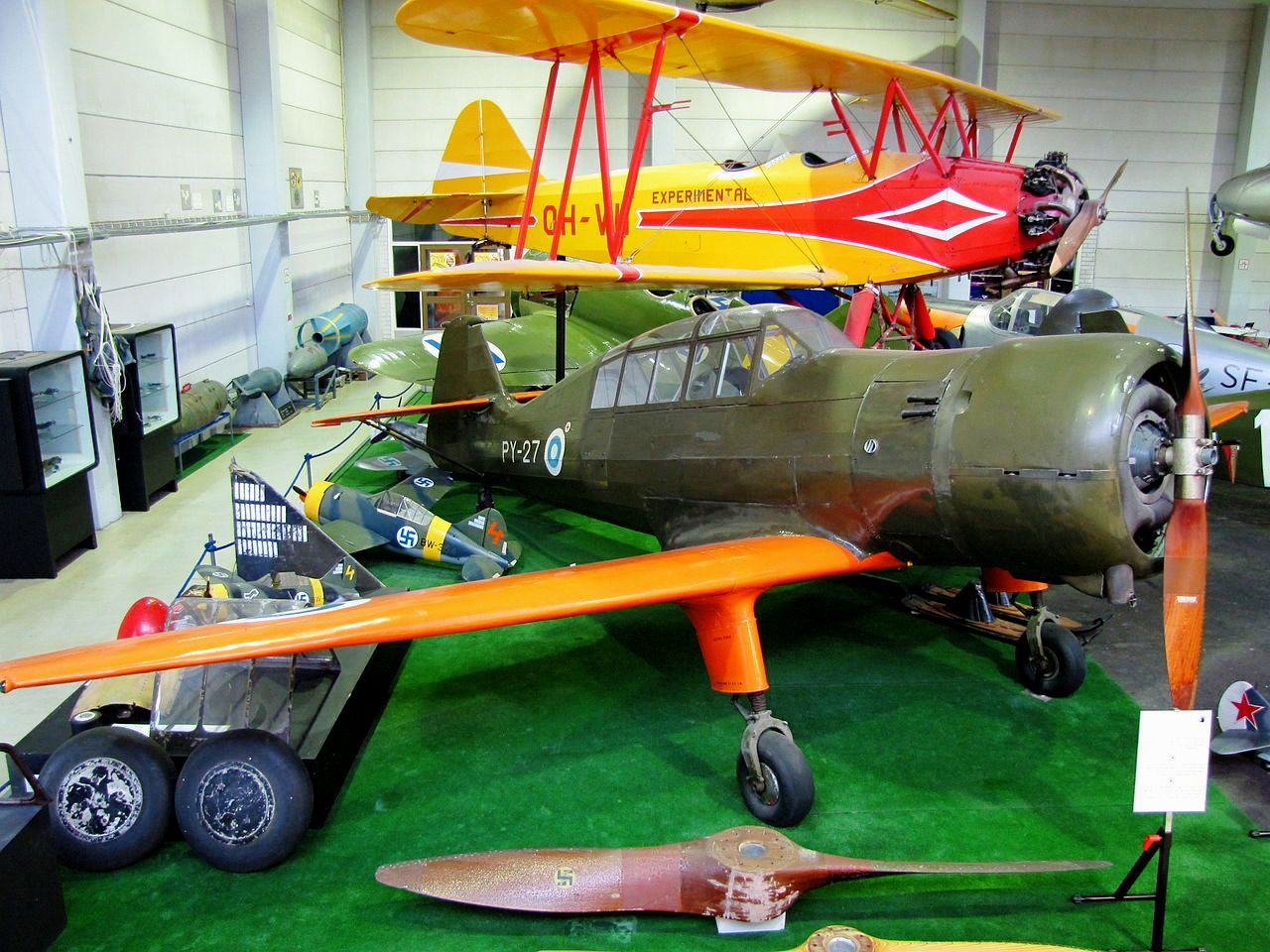 VL Pyry II fighter trainer (Serial No. PY-27), and VL Viima II (Serial No. OH-VII), former VI-21 primary trainer. Finnish Aviation Museum, Helsinki-Vantaa Airport.