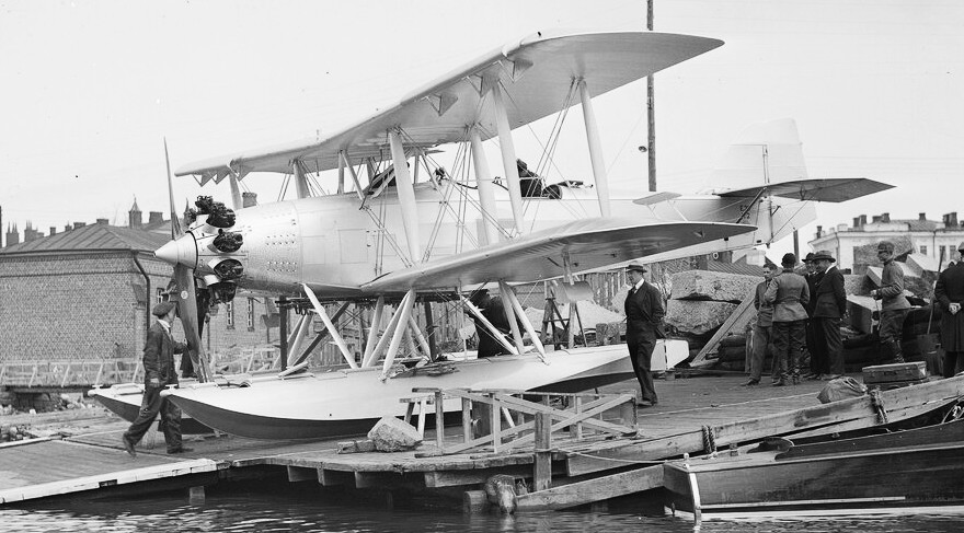Finland Air Force Hawker Dantorp, (Serial No. KA-145), Danish-built single-engined biplane floatplane torpedo bomber, at Kotka in Suomenlinna, 1931.