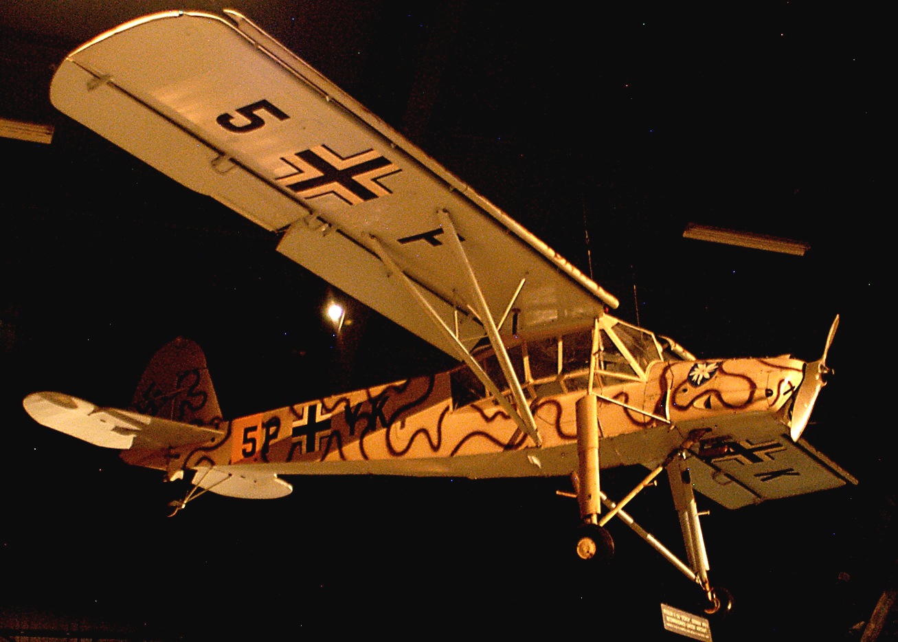 Fieseler Fi-156C-1 Storch (Wk. Nr. TBC), coded 5F+YK. This aircraft is painted as the Storch used by Field Marshal Erwin Rommel in North Africa. Built in 1940, it was exported to Sweden where it remained until 1948. The last German to fly it before its acquisition by the donors in 1973 was German Second World War ace Erich Hartmann. National Museum of the United States Air Force, Dayton, Ohio.