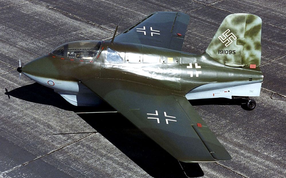 Messerschmitt Me 163B-1A Komet (Serial No. 191095), C/N 191095. National Museum of the United States Air Force, Dayton, Ohio. Five Me 163s were originally brought to the United States in 1945, receiving the Foreign Equipment numbers FE-495 and FE-500 to 503.