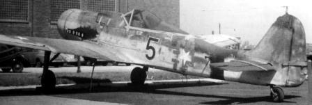Focke-Wulf Fw 190D-9, (Wk. Nr. 401392), “Black 5”, JG26, captured at Flensburg.  Designated RAF USA 13, this aircraft was shipped to the USA on HMS Reaper and allotted USA FE-121, later T2-121.  It was scrapped at Freeman Field, Indiana, ca. 1946.