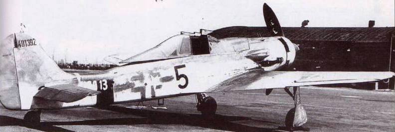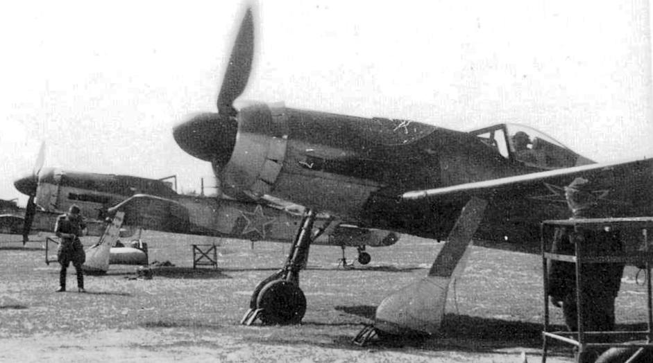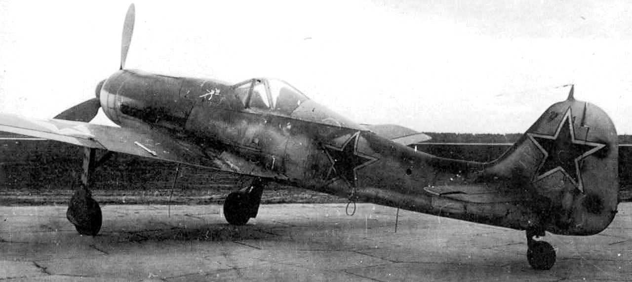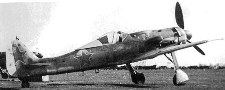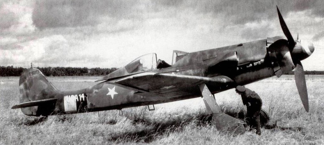Focke-Wulf Fw 190D-9 flown by Soviet Baltic Fleet Air Force pilots in June 1945. The war was already over when this aircraft arrived for testing in the USSR.  The flight tests suggested the Soviet La-5 was superior to the Dora in many respects.