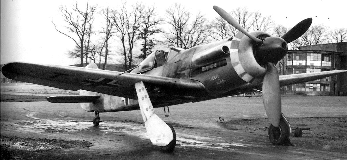 Focke-Wulf Fw 190D-9, (Wk. Nr. 211018), “White 14” from II./JG26, shipped to the USA.  This aircraft was designated USA FE-119, later T2-119.  It was destroyed in a crash at Freeman Field, Indiana, on 22 Sep 1945.