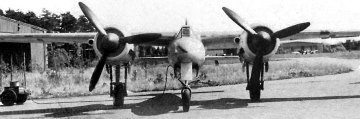 On 23 November 1943, the V3 prototype, which was also the first to be poweredby the Jumo 211R engines and carry radar apparatus, made its first flight.[5]The added weight of the guns and drag of the 32-dipole element Matratze radarantennas used on its UHF-band FuG 212 C-1 Lichtenstein radar unit slowed theaircraft by a full 75 km/h, although it was still somewhat faster than the He219. The rest of the 15 prototypes were then delivered as A-0 models, identicalto the V3. Some of these also included a raised canopy for better vision to therear.