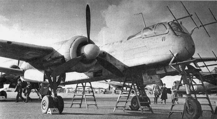 Heinkel He 219 (Wk. Nr. 310189), No. VI, one of the prototypes, subsequently rebuilt as an A-5/R2 variant. Farnborough display.