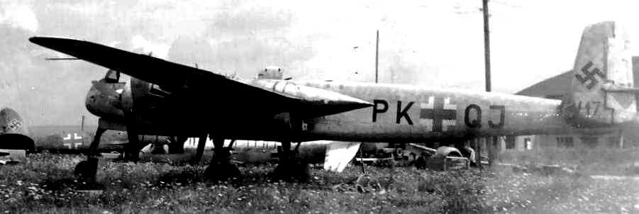 When the war had ended in Europe, the U.S. Army Air Forces Intelligence Service, as part of “Operation LUSTY” (Luftwaffe Secret Technology), took control of three He 219s at the Grove base of the 1st Night Fighter Wing (Nachtjagdgeschwader 1) in Jutland, Denmark starting on 16 June 1945. These aircraft were made flight-worthy by “Watson’s Whizzers” and flown to Cherbourg, France. He 219 A-2 Werknummer 290202 was shipped to the United States with 21 other captured German aircraft on board the British escort carrier HMS Reaper, and was reassembled at Newark Army Air Field, Newark, New Jersey.Werknummer 290202 was given the foreign equipment number FE-614, and later T2-614. The aircraft was flown to Freeman Field, Indiana for flight testing along with a second of the three He 219s: a He 219 A-5 prototype, Werknummer 290060 and given the foreign equipment number FE-612. The fate of Werknummer 290060 is unknown. Following testing, He 219 A-2 Werknummer 290202 was then moved to Orchard Place Airport in Park Ridge, Illinois in 1946. It was stored in a vacant aircraft factory and then transferred to the Smithsonian’s National Air Museum on 3 January 1949. Finally, the He 219 was crated and shipped to the Smithsonian’s Silver Hill, Maryland storage facility in early 1955. He 219 A-2 Werknummer 290202 is currently restored and on display at the Steven F. Udvar-Hazy Center by Dulles Airport. (Wikipedia)