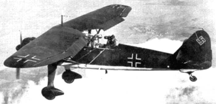 The Hs 126 saw combat on numerous fronts, the first occasion being with theLegion Condor contingent that participated in the Spanish Civil War during thelate 1930s. It was active on numerous fronts of the Second World War, by whichpoint it had become the principal short-range reconnaissance aircraft of theLuftwaffe. Large numbers of Hs 126s flew during the Invasion of Poland, the Battle of France, and the Invasion of the Soviet Union. On 12 September 1943, anumber of Hs 126s were used to tow ten DFS 230 attack gliders from Pratica Di Mare airfield near Rome to the Gran Sasso on a raid to rescue Benito Mussolini.The Royal Hellenic Air Force also operated 16 Hs 126s, which saw action during the Greco-Italian War. It was withdrawn from Luftwaffe service in 1943, by which point the Hs 126 had been superseded by the Fieseler Fi 156 Storch, a general-purpose STOL aircraft, as well as the twin-boom Focke-Wulf Fw 189 Uhu. (Wikipedia)