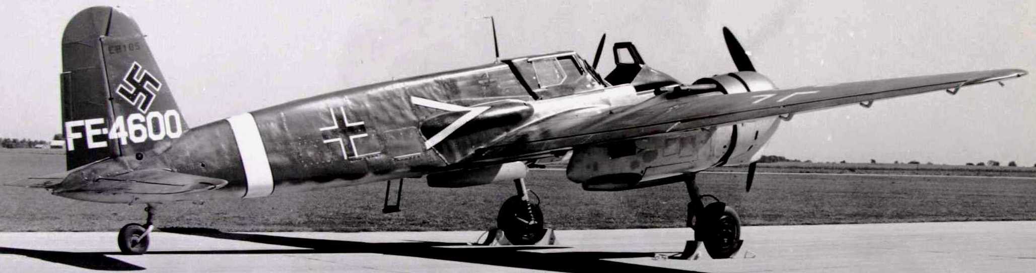 Henschel Hs 129B-1/R2, (Wk. Nr. 0385), 8.(Pz)1Sch.G2, captured at El Aouina, Tunisia, in May 1943. This aircraft was brought to the USA where it was designated EB-105, then USA FE-103, later FE-4600 and then T2-4600, at Freeman Field, Indiana in 1945. The aircraft was cut up for scrap in 1946, but the cockpit was purchased and is on display in Der Adler Luftwaffe Museum, Sidney, Australia. Another Hs 129 was reported to have been at Freeman Field, fate unknown.