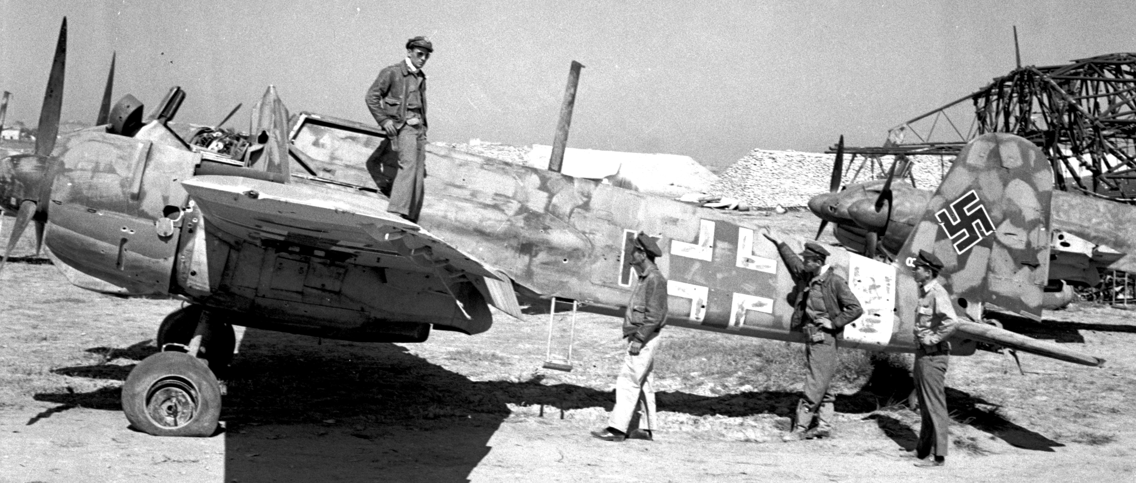 Henschel Hs 129B-1 ground attack aircraft, 5PzSG1, captured at Tunis, being examined by USAAF personnel, May 1943. (USAAF Photo)