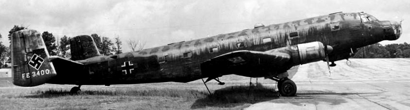 Junkers Ju 290 A-4, s/n 0165, PI+PS, was the prototype for the, renumbered “A3+HB”, of KG 200. It had been equipped with attachments for FX 1400, Hs 293, and Hs 294 missiles, and fitted with FuG 203e radar, and was surrendered to the USA. Renamed “Alles Kaputt”, and numbered “FE 3400”, it was flown to the USA by USAAF Colonel Harold E. Watson from Orly, Paris to Wright Field, Ohio (USA), on 28 July 1945, via the Azores. The captured aircraft, with its German insignia repainted, was a frequent performer at air shows at Freeman Field and Wright Field. When the aircraft was scrapped at Wright Field in 1946, an plastic explosive device of German manufacture was discovered in the wing near to a fuel tank.