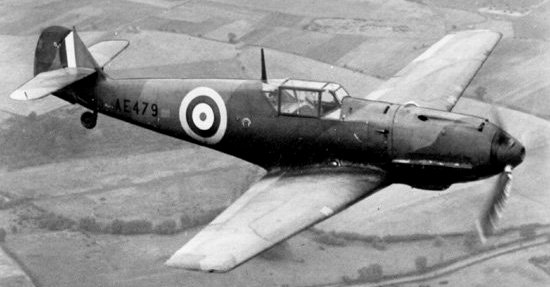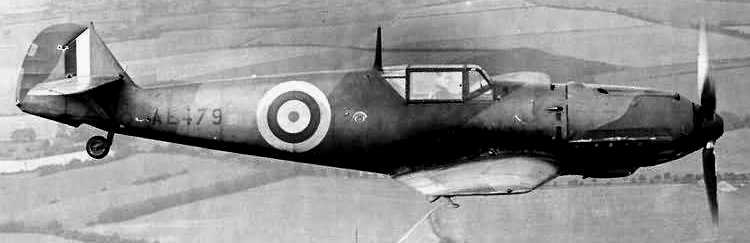 Messerschmitt Bf 109E-3, (Wk. Nr. 1304), coded “White 1” before being painted with RAF roundels and designated AE479.