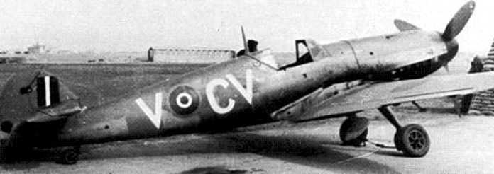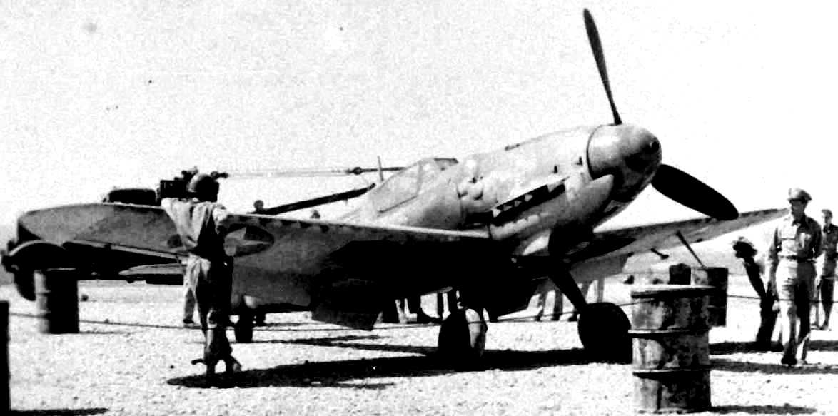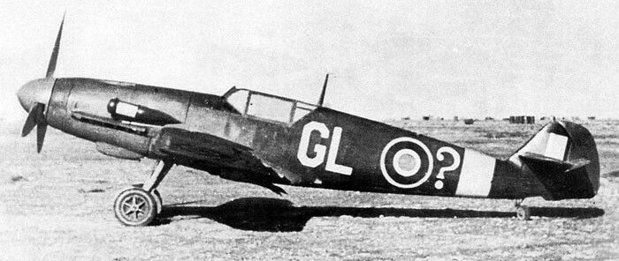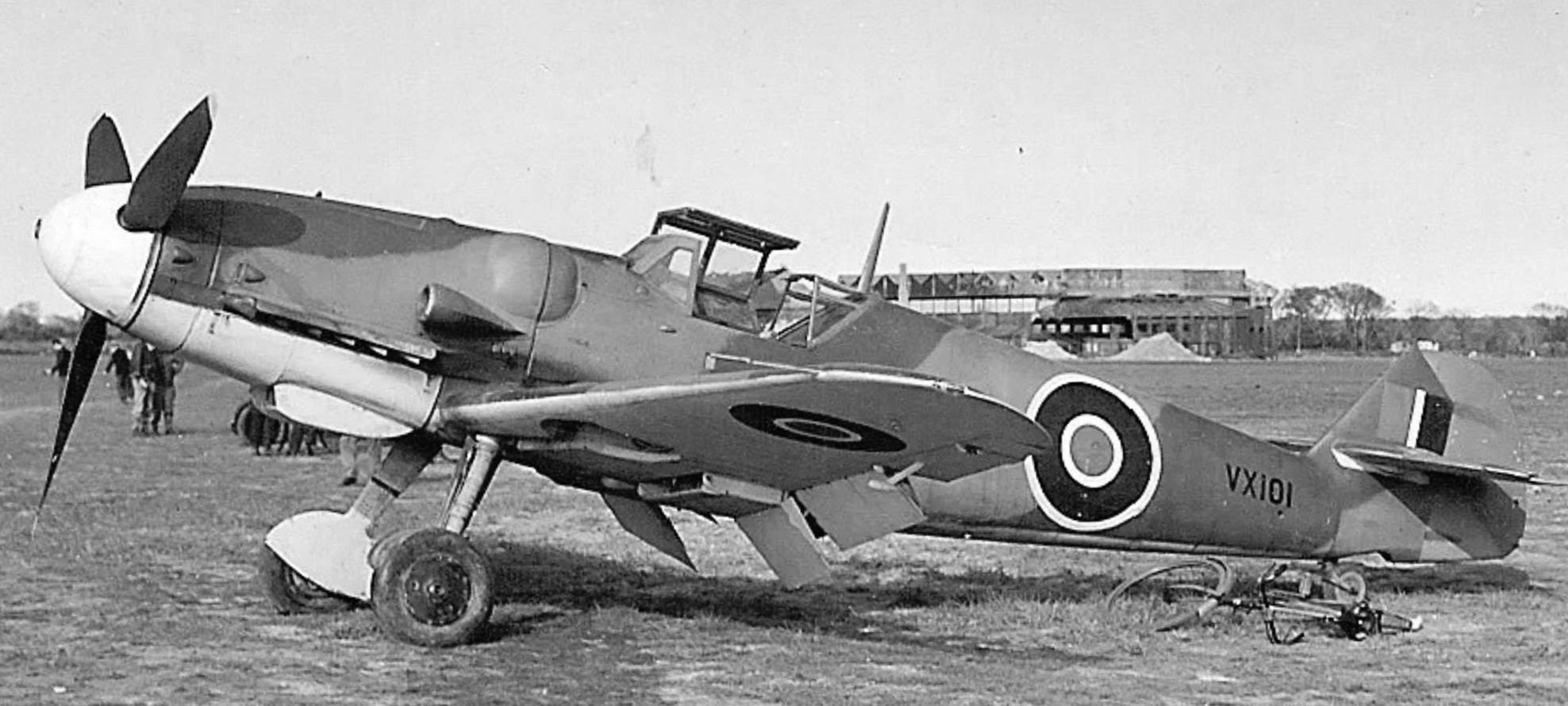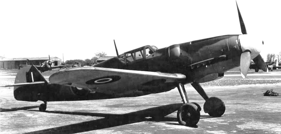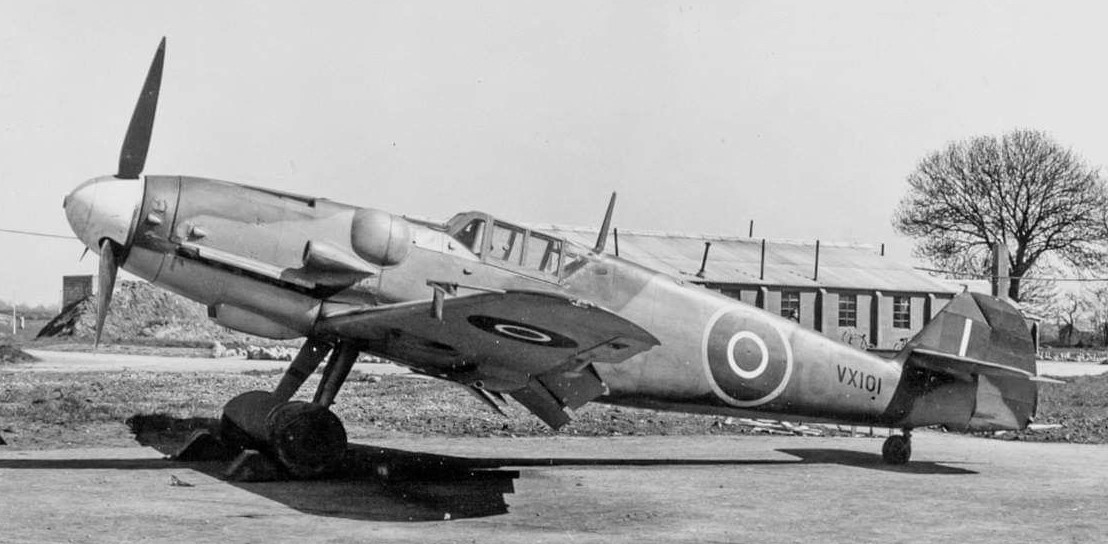 Messerschmitt Bf 109G-6/Trop, (Wk. Nr. 15270), ex 6./JG53 Yellow 1, captured at Comiso, Italy, Summer 1943. Evaluated by RAF at Collyweston in 1944, RAF Reg. No. VX101. This aircraft crashed on 19 May 1944, and was used for spare parts after its landing accident.