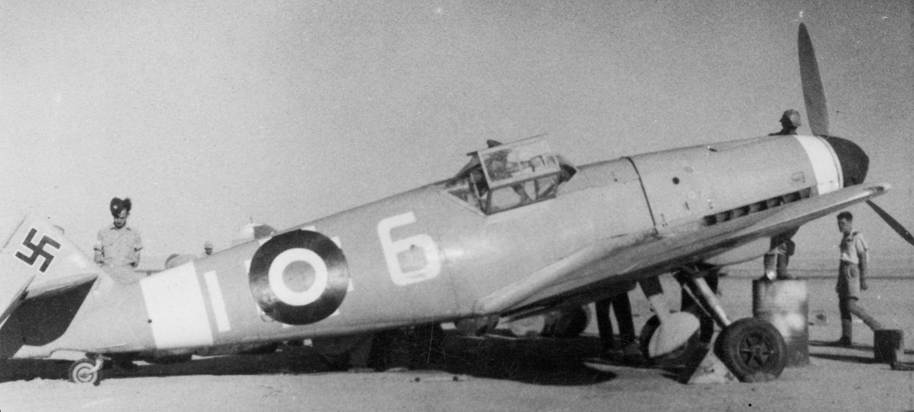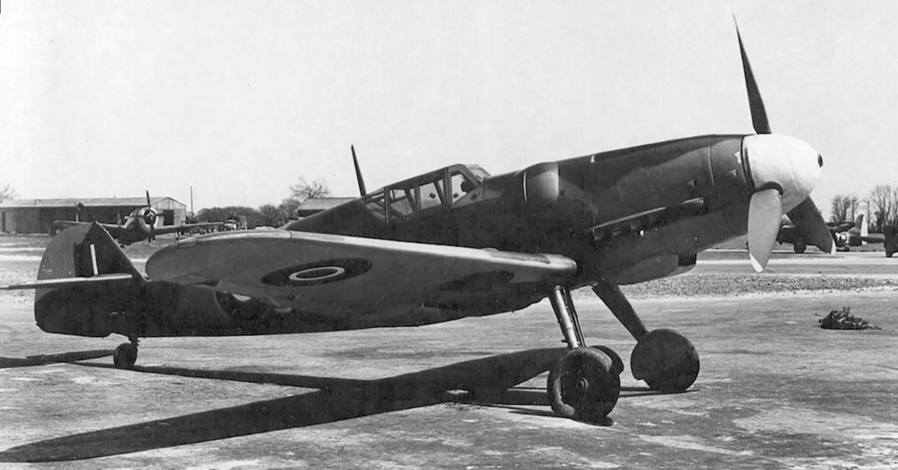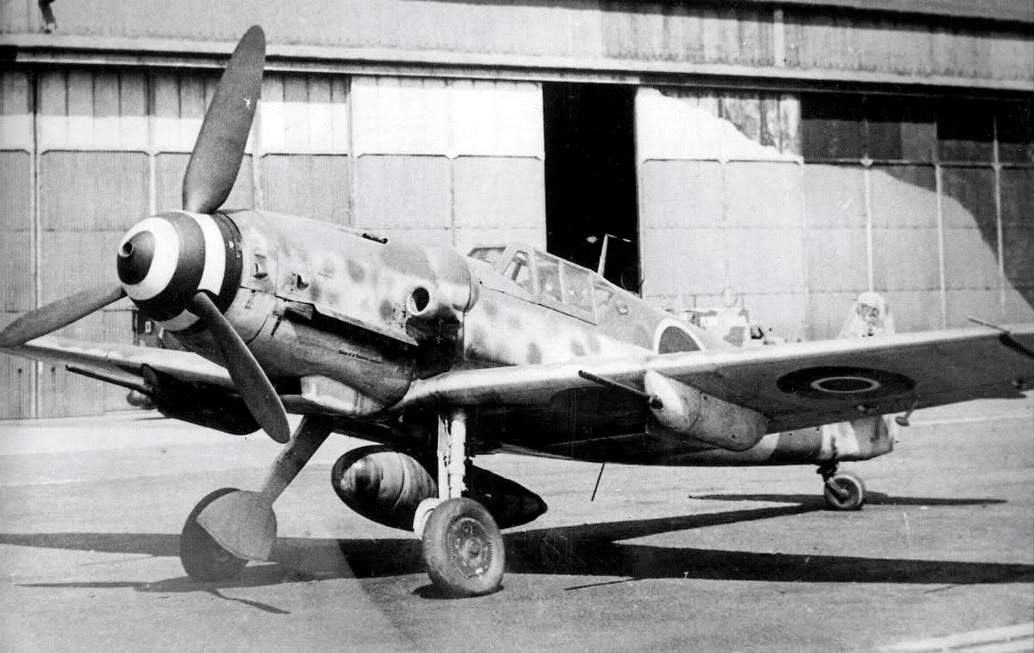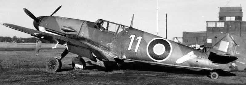 Messerschmitt Bf 109G-6/Trop, (Wk. Nr. 15270), ex 6./JG53 Yellow 1, captured at Comiso, Italy, Summer 1943. Evaluated by RAF at Collyweston in 1944, RAF Reg. No. VX101. This aircraft crashed on 19 May 1944, and was used for spare parts after its landing accident.