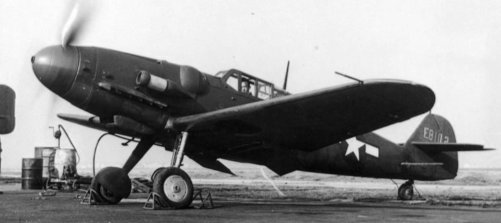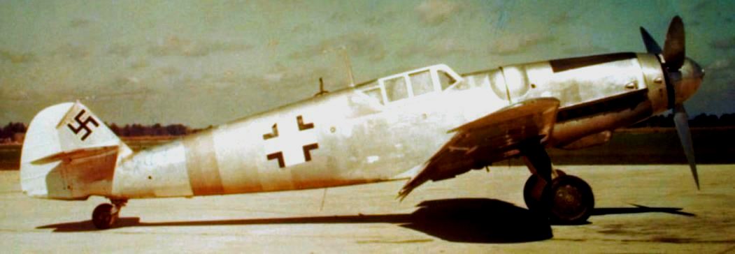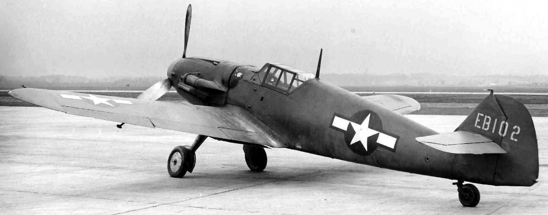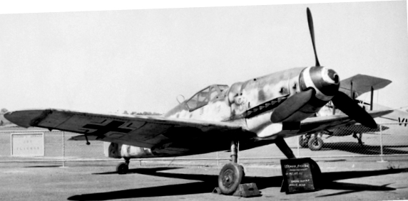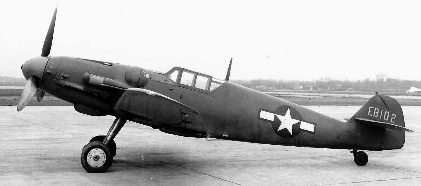 Messerschmitt Bf 109F-4, (Wk. Nr. 7640), USAAF EB-1, later EB-100. This aircraft was presented to the USA by the USSR in November 1942 as a goodwill gesture after a visit to Moscow by Wendell Wilkie, the US Secretary of State. It arrived at Eglin AFB, Florida on 21 March 1944, where it was flown on a number of test flights.