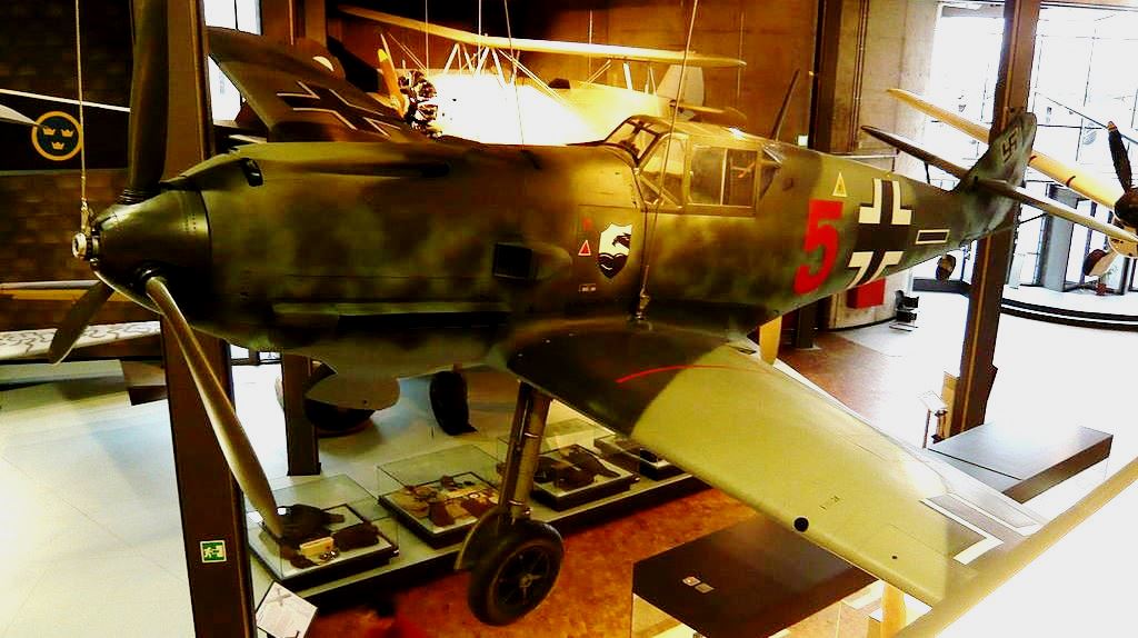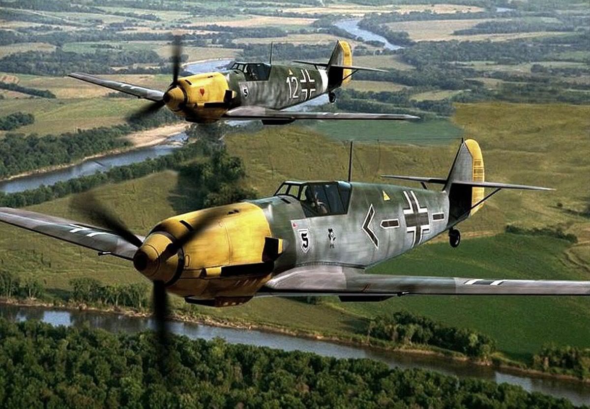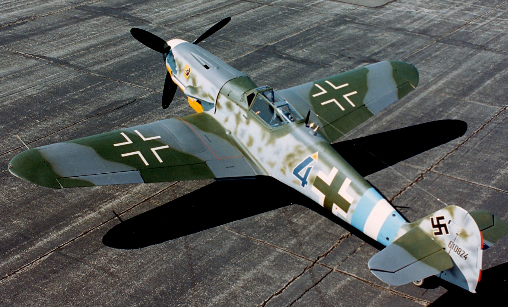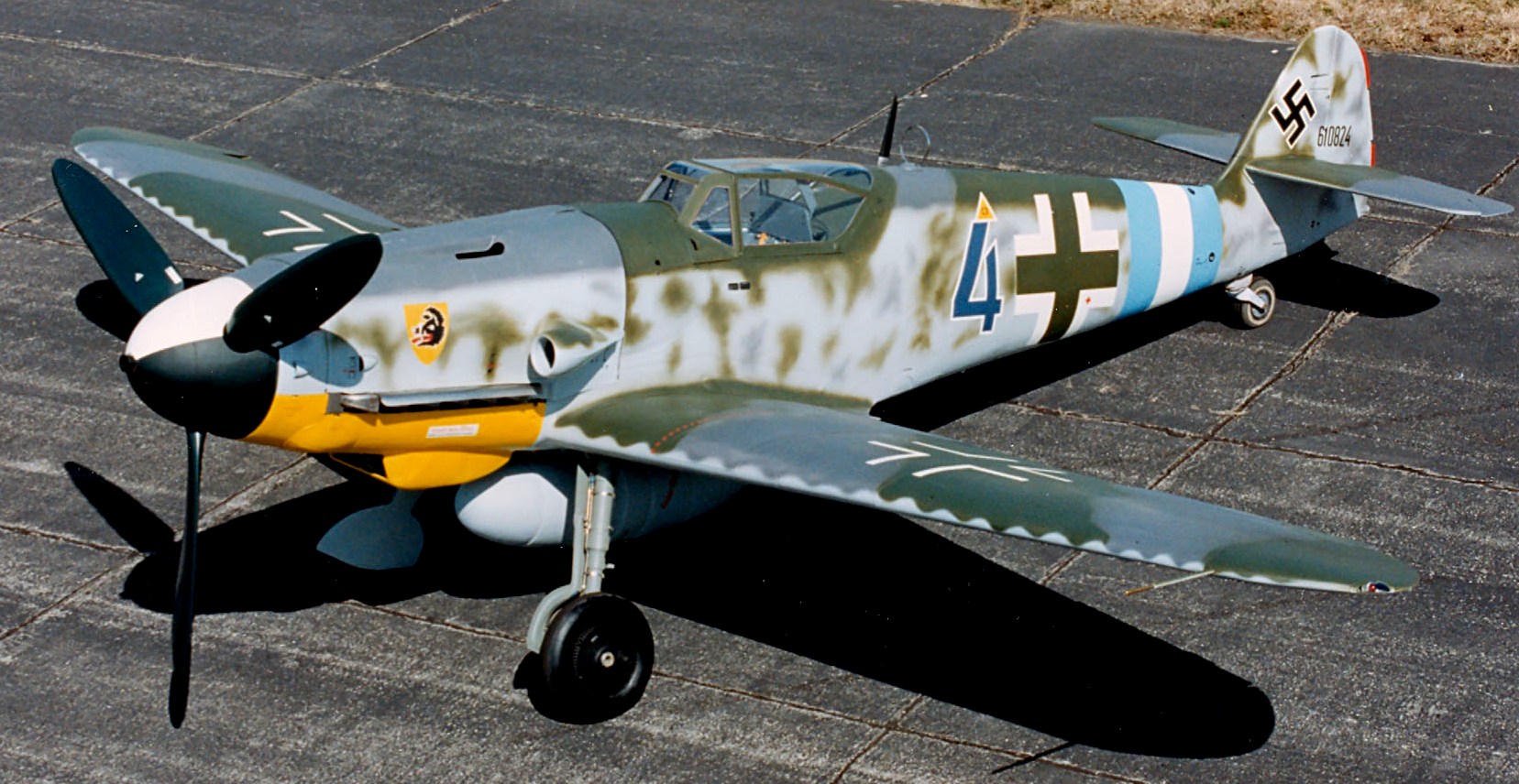 The Messerschmitt Bf 109 is a German World War II fighter aircraft that was, along with the Focke-Wulf Fw 190, the backbone of the Luftwaffe’s fighter force. The Bf 109 first saw operational service in 1937 during the Spanish Civil War. It was still in service at the end of the Second World War in 1945. It was one of the most advanced fighters when it first appeared, with an all-metal monocoque construction, a closed canopy, and retractable landing gear. A liquid-cooled, inverted-V12 aero engine powered it. It was called the Me 109 by Allied aircrew and some German aces, even though this was not the official German designation.The plane was designed by Willy Messerschmitt and Robert Lusser, who worked at Bayerische Flugzeugwerke during the early to mid-1930s. It was conceived as an interceptor. However, later models were developed to fulfill multiple tasks, serving as bomber escort, fighter-bomber, day-, night-, all-weather fighter, ground-attack aircraft, and aerial reconnaissance aircraft. It was supplied to several states during World War II and served with several countries for many years after the war. The Bf 109 is the most produced fighter aircraft in history, with a total of 34,248 airframes produced from 1936 to April 1945. Some of the Bf 109 production took place in Nazi concentration camps through slave labour.The Bf 109 was flown by the three top-scoring fighter aces of all time, who claimed 928 victories among them while flying with Jagdgeschwader 52, mainly on the Eastern Front. The highest-scoring, Erich Hartmann, was credited with 352 victories. The aircraft was also flown by Hans-Joachim Marseille, the highest-scoring ace in the North African campaign, who shot down 158 enemy aircraft (in about a third of the time). It was also flown by many aces from other countries fighting with Germany, notably the Finn Ilmari Juutilainen, the highest-scoring non-German ace. He scored 58 of his 94 confirmed victories with the Bf 109. Pilots from Hungary, Romania, Bulgaria, Croatia, and Italy also flew the fighter. Through constant development, the Bf 109 remained competitive with the latest Allied fighter aircraft until the end of the war. (Wikipedia)