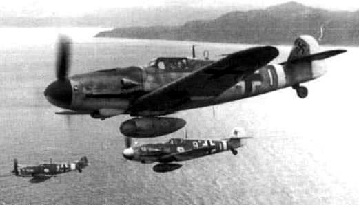 Messerschmitt Bf 109F three flight formation in Luftwaffe service.