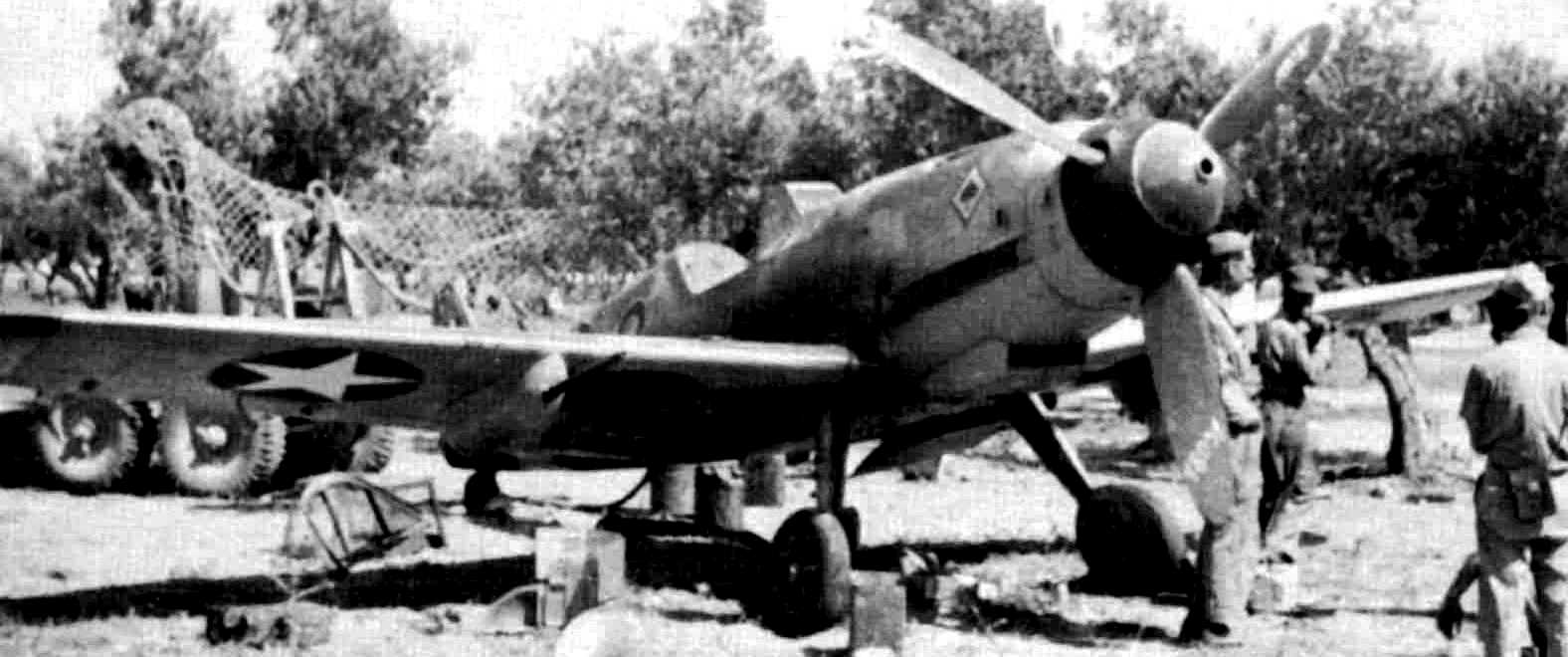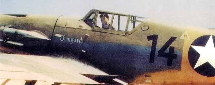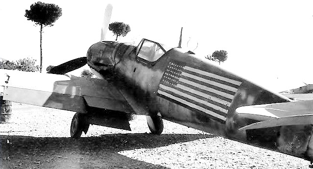 Messerschmitt Bf 109 G-14/AS of the Croatian air force after it surrendered in Italy, marked with an American flag.