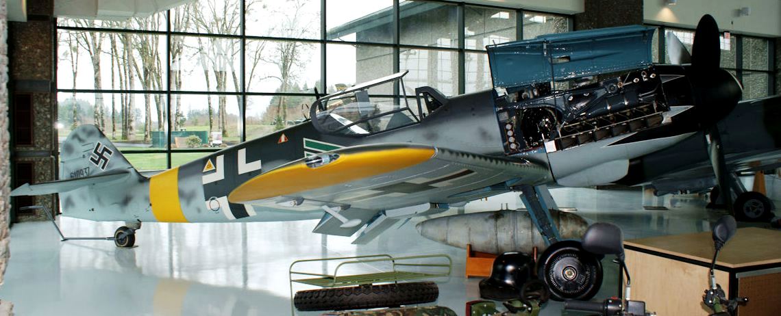 Messerschmitt Bf 109G-10/U4, (Wk. Nr. 610937), airworthy. This aircraft is on display in the Evergreen Aviation & Space Museum, McMinnville, Oregon.