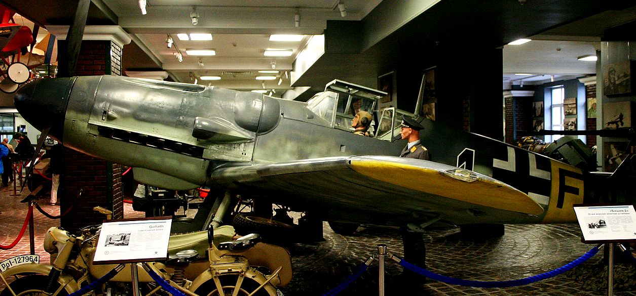 Bf 109F-4 (replica) is on display at the Moscow Central Museum of the Great Patriotic War, Russia. This aircraft is a 1:1 scale replica without any original parts. It is painted in the markings of JG3 “Udet”.