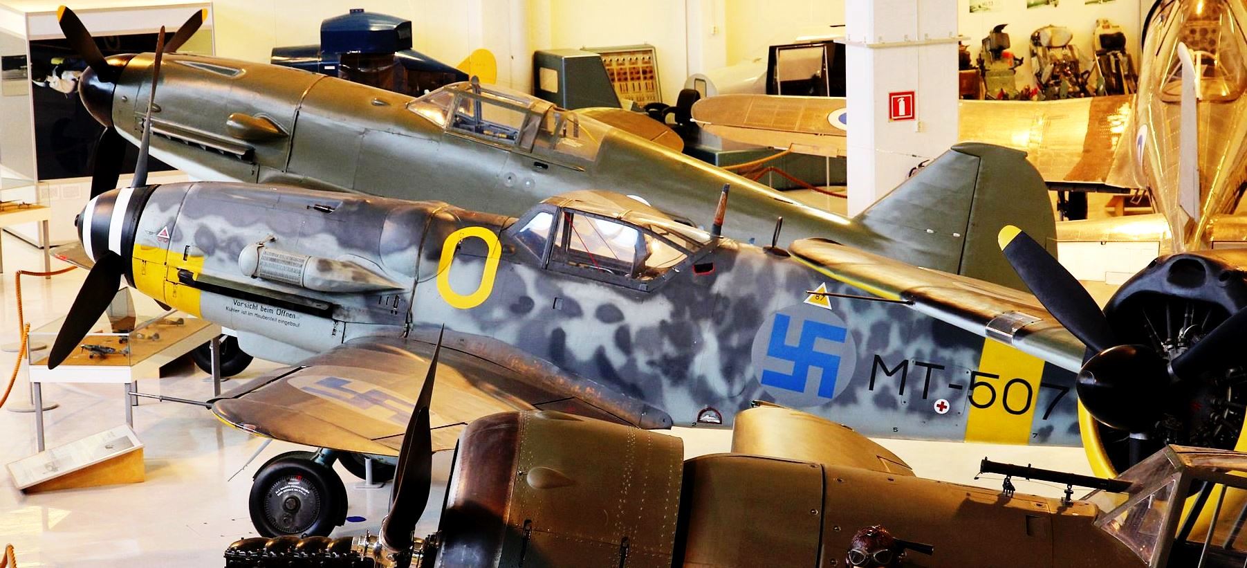 Bf 109G-6/U2, (Wk. Nr. 165227) coded MT-452, BV+UE. During the years 1943 and 1944, Messerschmitt delivered160 Bf 109G-6 to the Finish Air Force, including 165227, which served until 1954, coded as MT-542. In 1970, the plane was restored and is on display coded Yellow 4, in the Suomen Ilmailumuseo (Finnish Air Force Museum), Sanatahamina, Utti Air Force Base, Helsinki, Finland.
