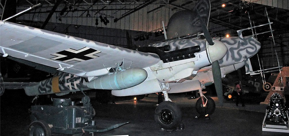 Messerschmitt Bf 110G-4/R6, (Wk. Nr. 730301) with FuG220 radar, captured at Grove, Denmark in May 1945. Designated RAF AM34, this aircraft is displayed in the RAF Museum, Hendon.