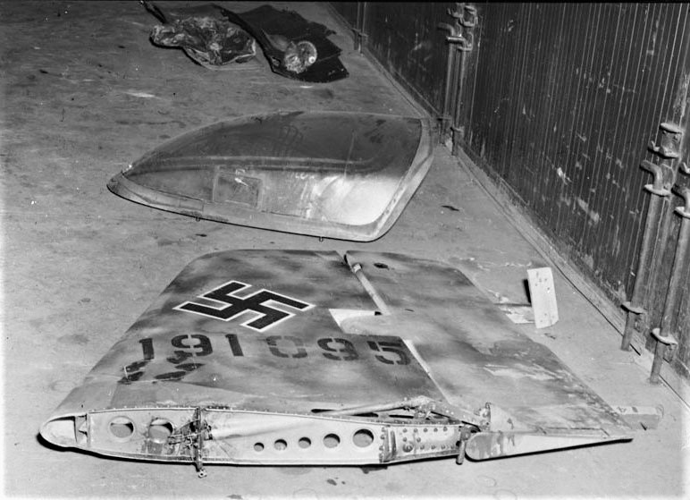 Messerschmitt Me 163B-1a Komet, (Wk. Nr. 191309), captured at Husum, Nordfriesland in Schleswig-Holstein, Germany. Designated RAF AM216, this aircraft’s fate is unknown, likely scrapped in England.