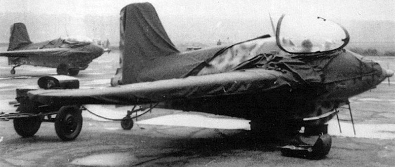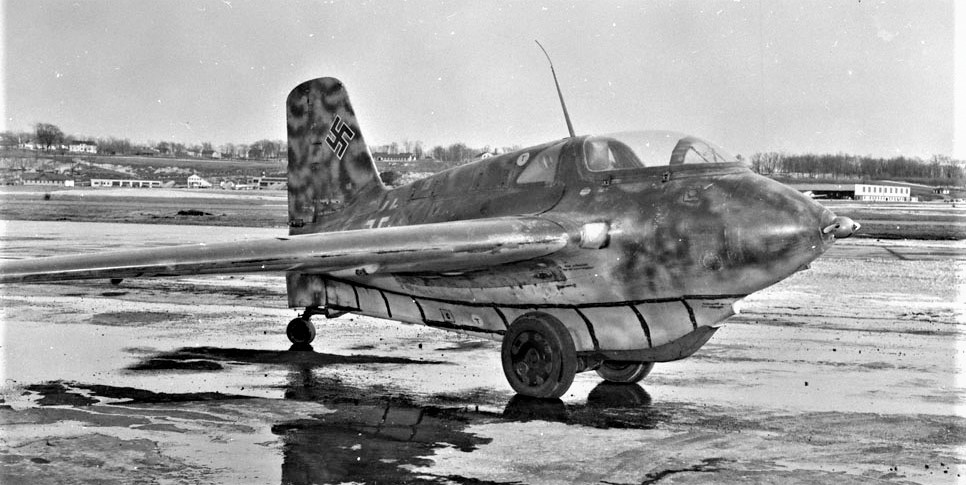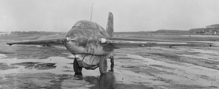 Messerschmitt Me 163B-1a Komet, RAF VF241. In March 1946, flight trials of the Messerschmitt Me 163B-1a VF241 were made mostly at the nearby airfield of Wisley, to avoid the busy circuit traffic at Farnborough, since the Me 163B was towed off as a glider by a Supermarine Spitfire and released at altitude to make its own way back to earth. These trials were primarily to explore the handling characteristics of the Me 163B’s tailless configuration, to provide information for other tailless designs on the drawing boards of British manufacturers in the post-war period. One of these aircraft came to Canada where it was also test flown as a glider.