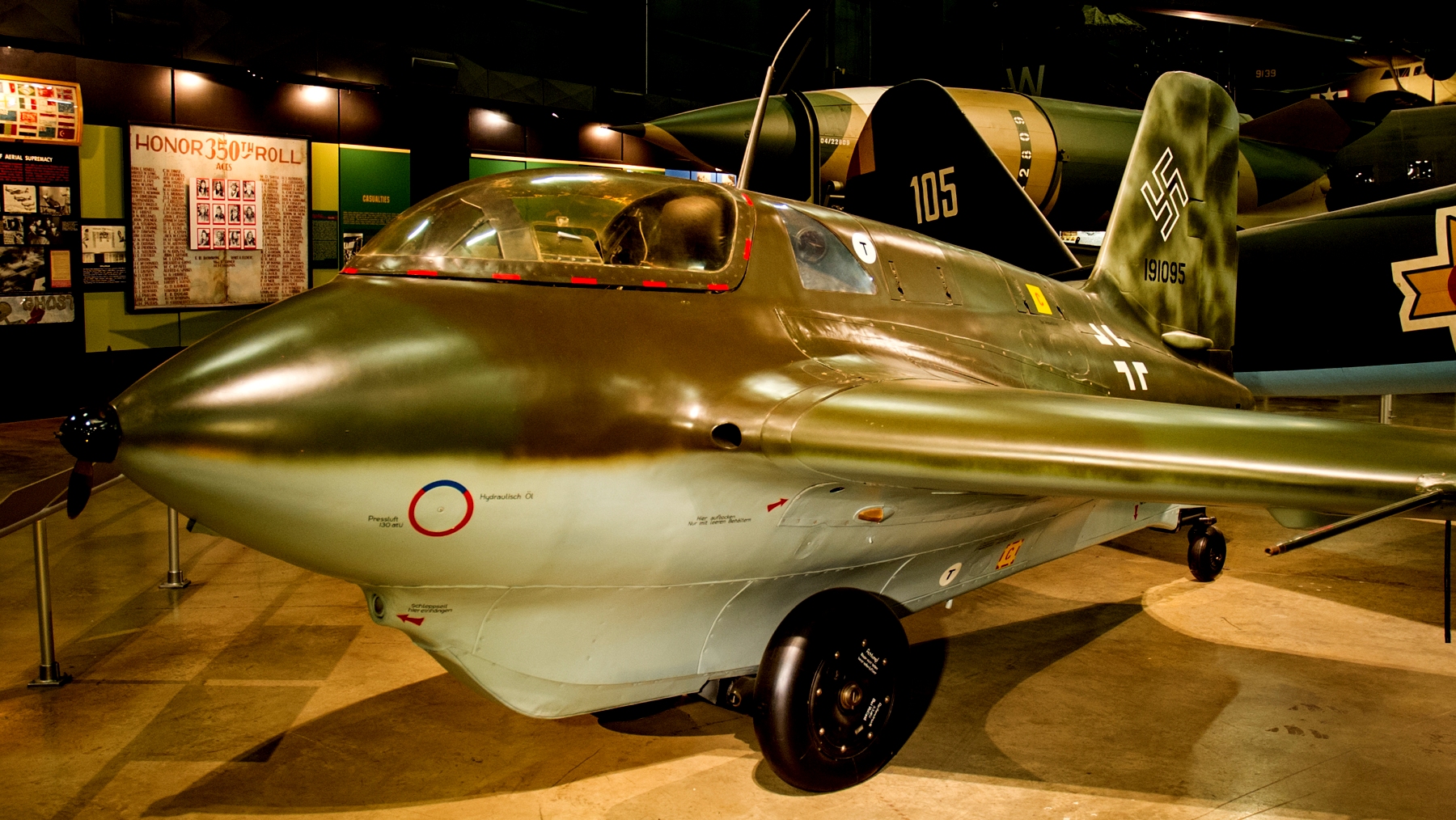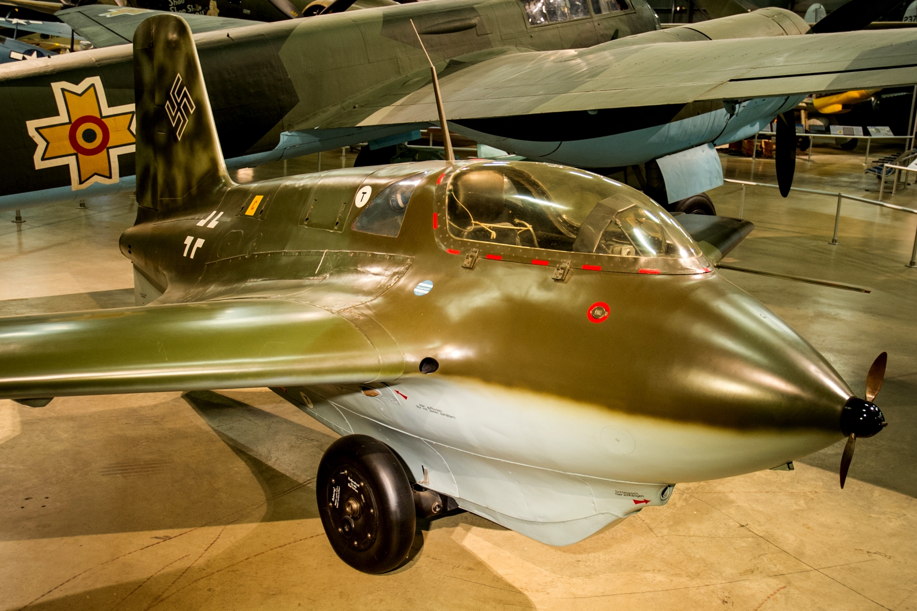 Messerschmitt Me 163B Komet rocket-propelled fighter (Wk Nr. 191095), with the National Museum of the United States Air Force, Dayton, Ohio. It was a gift from the CASM to the NMUSAF in 1999.