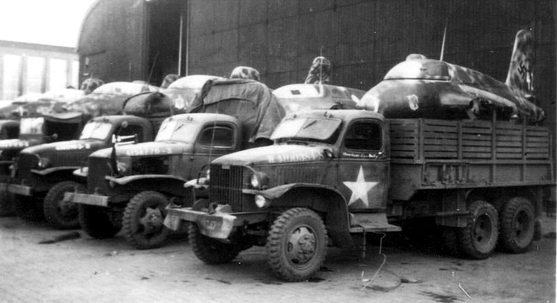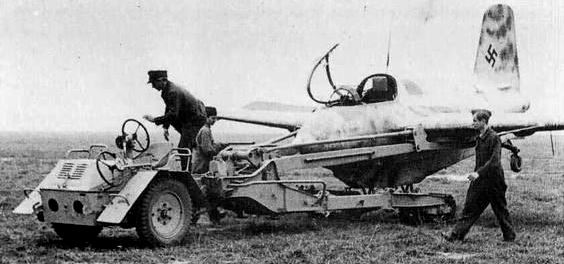 Messerschmitt Me 163 Komet fighters loaded on US Army trucks in Germany for transport to the shipping docks, May 1945.