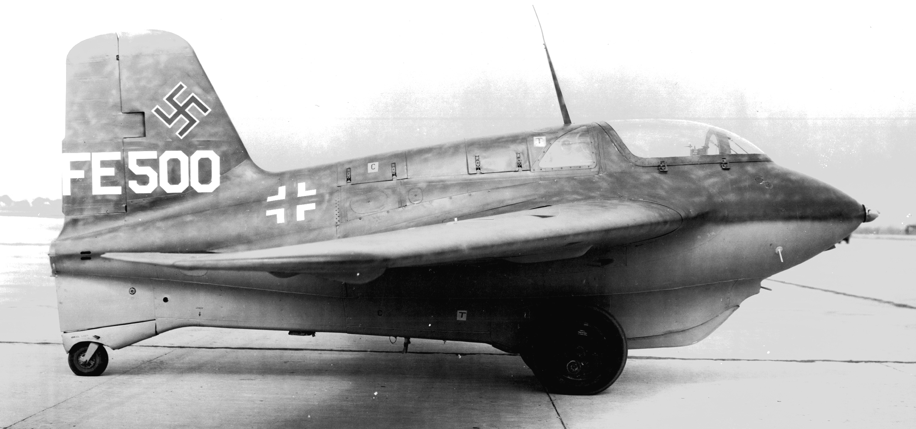 Five Me 163B-1a Komets were originally brought to the United States in 1945, receiving the Foreign Equipment numbers FE-495 and FE-500 to FE-503. Me 163B-1a FE-501, later T2-502 was used for spare parts for FE-500 until it was scrapped at Freeman Field in 1946, along with FE-502, later T2-502. Me 163B-1a FE-503, later T2-503, went to Bell Aircraft in 1946.