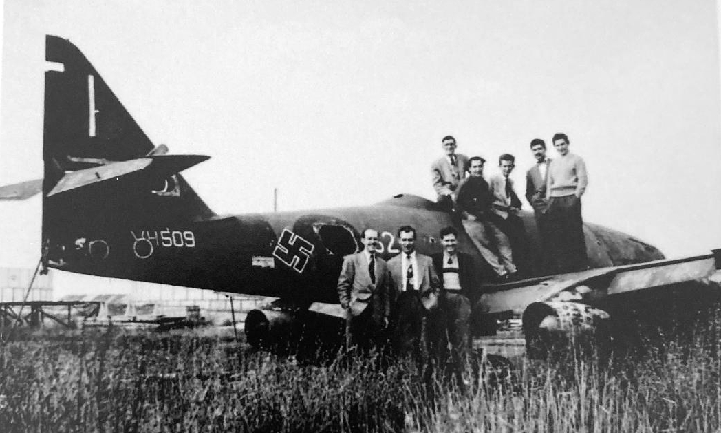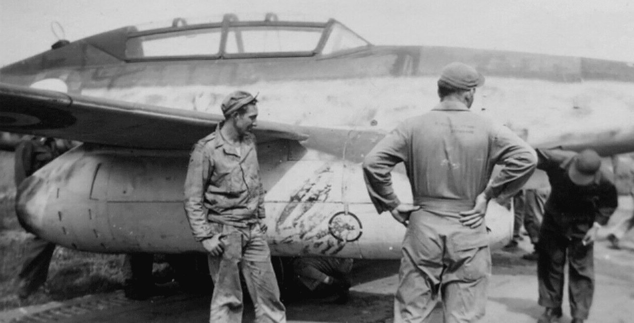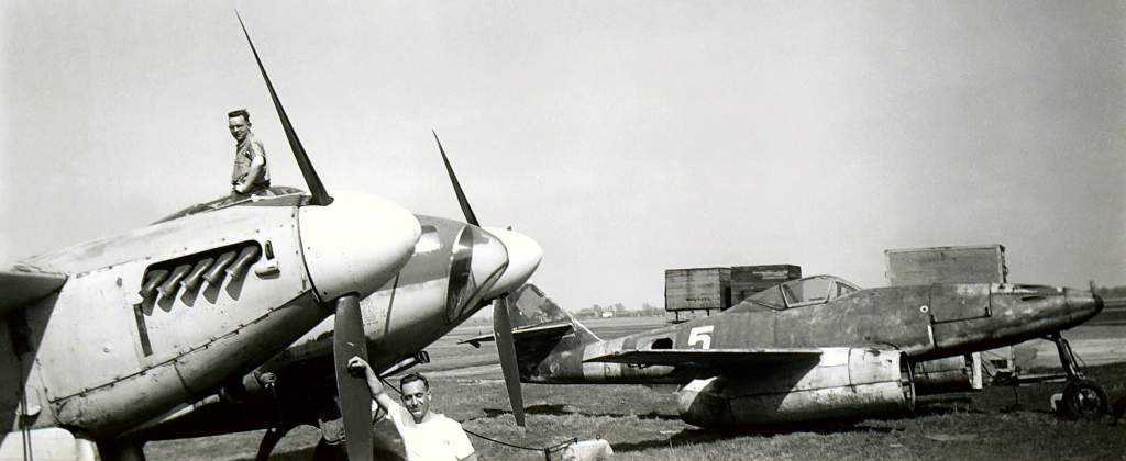 After the war, the “Whizzers” added a crew of 25 former Luftwaffe test pilots and mechanics to their team, including Hauptman Heinz Braun. Hauptman Braun had flown 70 women, children, and wounded troops to Munich-Riem airport on 8 May 1945. After he landed, Braun was approached by one of Watson’s men who gave him the choice of either going to a prison camp or flying with the “Whizzers.” Braun decided flying would be more preferable. Three Messerschmitt employees also joined the “Whizzers,” with Karl Baur, the Chief Test Pilot of Experimental Aircraft; test pilot Ludwig “Willie” Huffman; and engineering superintendent, Gerhard Coulis. Test pilot Herman Kersting joined later. When the “Whizzers” located nine Me 262 jet aircraft at Lechfeld airfield, these Luftwaffe test pilots had the expertise to fly them.