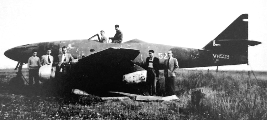 Messerschmitt Me 262A-2a “Sturmvogel” (Wk. Nr. 500210), RAF VH509, AM52, a little worse for wear in 1951 on the field at Downsview, Ontario. It’s unlikely that it made it off the field in this condition and there are stories that it was bulldozed by de Havilland staff and lies under the end of the runway at Downsview.