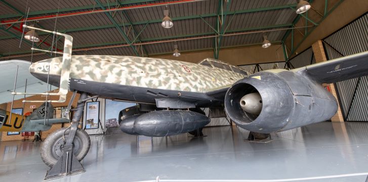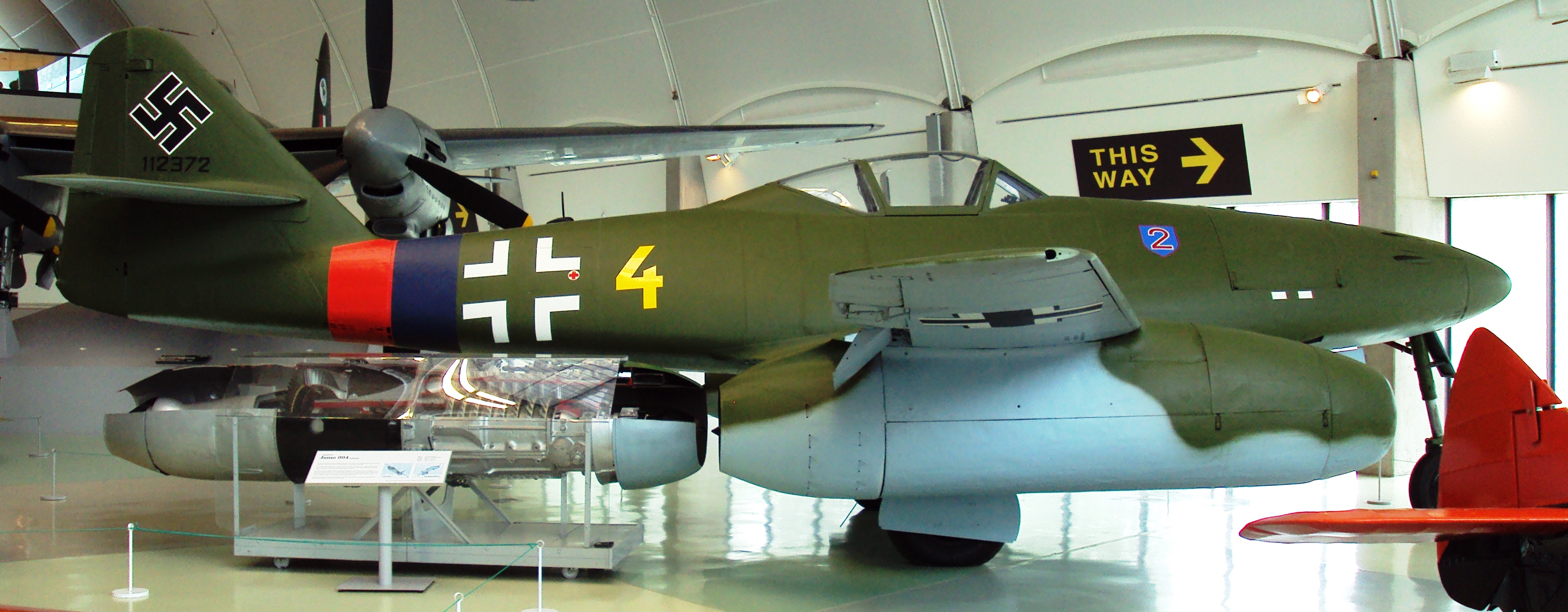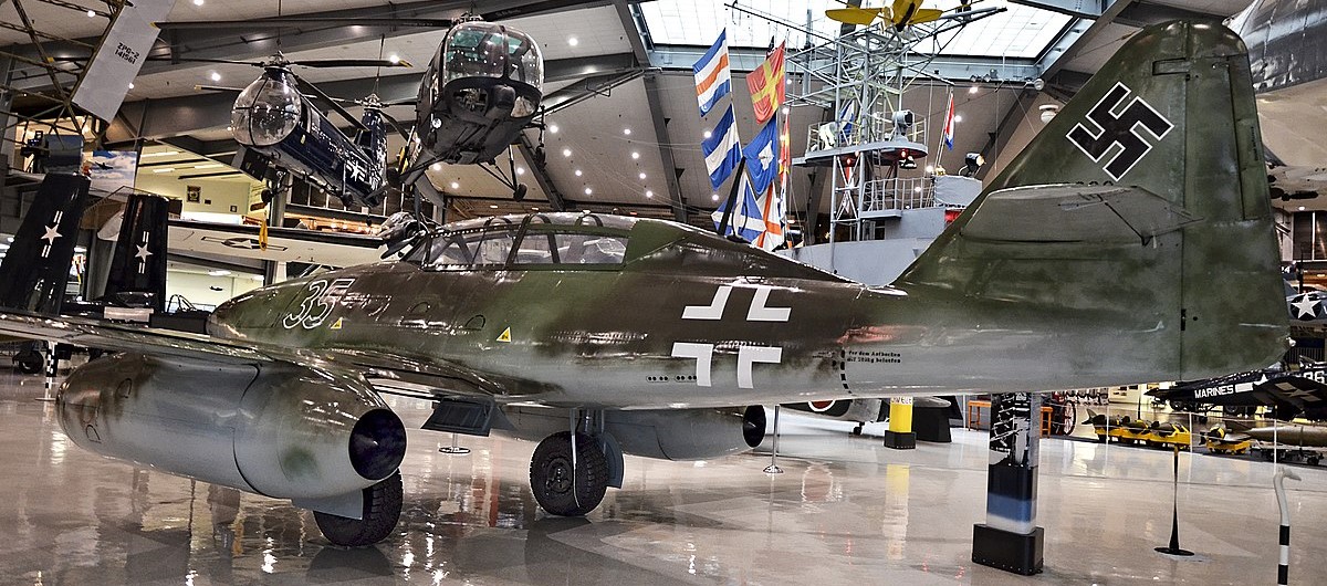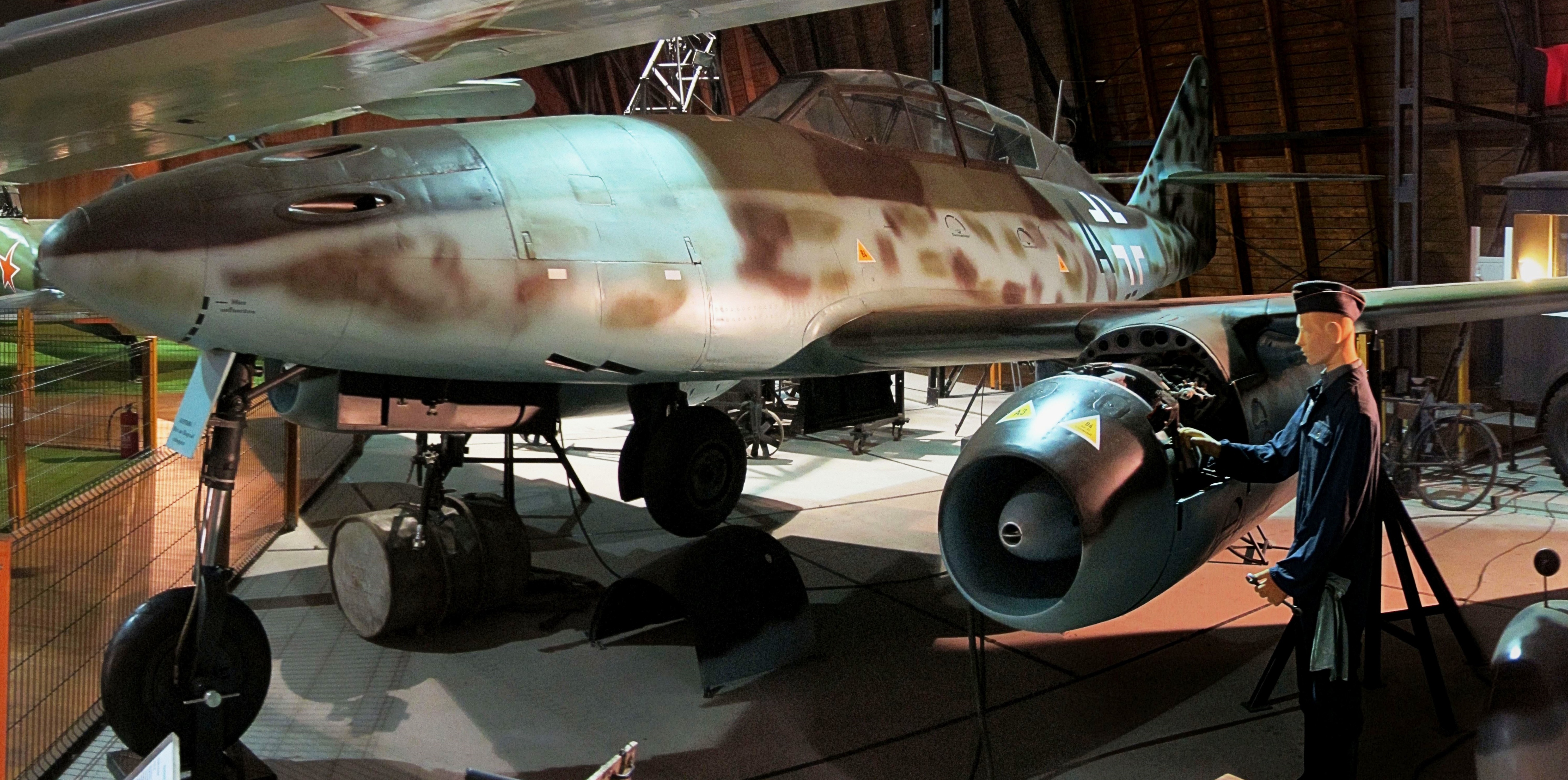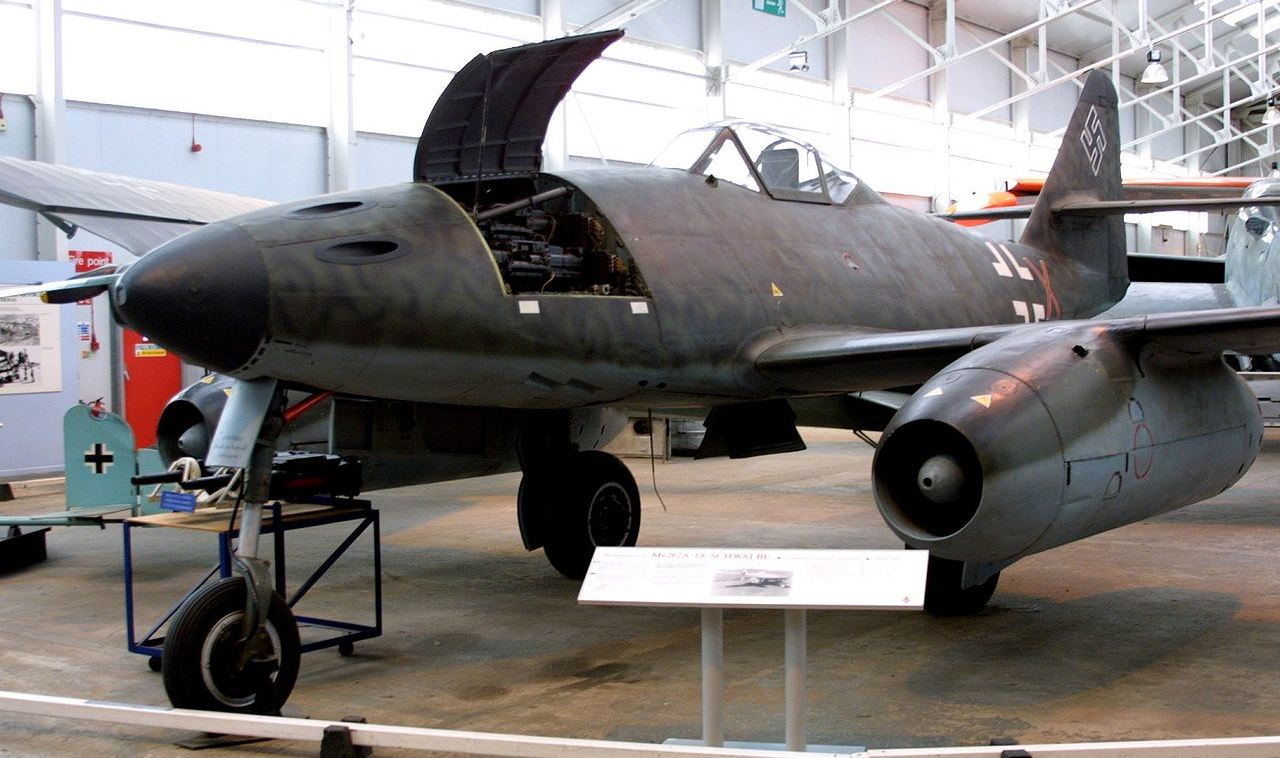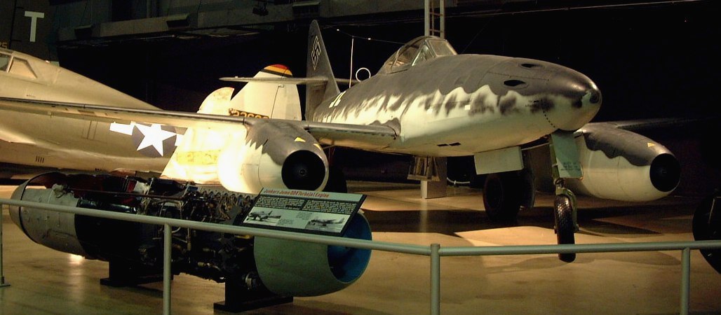 Messerschmitt Me 262A-1a “Schwalbe“ (Wk. Nr. 501232), “Yellow 5“, 3./KG(J)6. with its Junkers Jumo 004 turbojet engine (Yellow 5), NMUSAF, Dayton, Ohio.