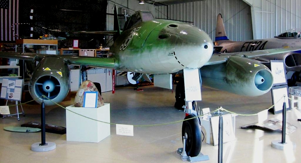 “On the 17th of May 1946 Colonel Watson flew the aircraft to Patterson Field for the start of this series of trials. It was flown at Patterson and Wright Fields on test work for 4 hours and 40 minutes (8 flights), being flyable at Wright Field in August 1946. Flight trials were discontinued after four engine changes were required during the course of the tests, culminating in two single-engine landings. Around 1955, the plane (now in fairly rough shape) was acquired by Edward T. Maloney for his Planes of Fame Air Museum, then at Claremont, California. The museum later moved to Ontario, California and finally Chino, California. The plane stayed in the museum’s collection for many years, undergoing one or more restorations. On display, the plane was marked in a “White Nine” colour scheme copied from a photograph of another aircraft, which was scrapped on a dump near Munich following the war.”