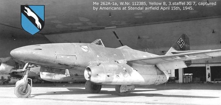 Messerschmitt Me 262A-2a Schwalbe, (Wk. Nr. 112385), “Yellow 8“, captured at Stendal, fate unknown.