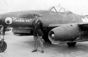 Luftwaffe pilots eventually learned how to handle the Me 262’s higher speed and the Me 262 soon proved a formidable air superiority fighter, with pilots such as Franz Schall managing to shoot down seventeen enemy fighters in the Me 262, ten of them American P-51 Mustangs. Other notable Me 262 aces included Georg-Peter Eder, with twelve enemy fighters to his credit (including nine P-51s), Erich Rudorffer also with twelve enemy fighters to his credit, Walther Dahl with eleven (including three Lavochkin La-7s and six P-51s) and Heinz-Helmut Baudach with six (including one Spitfire and two P-51s) amongst many others. (Wikipedia)
